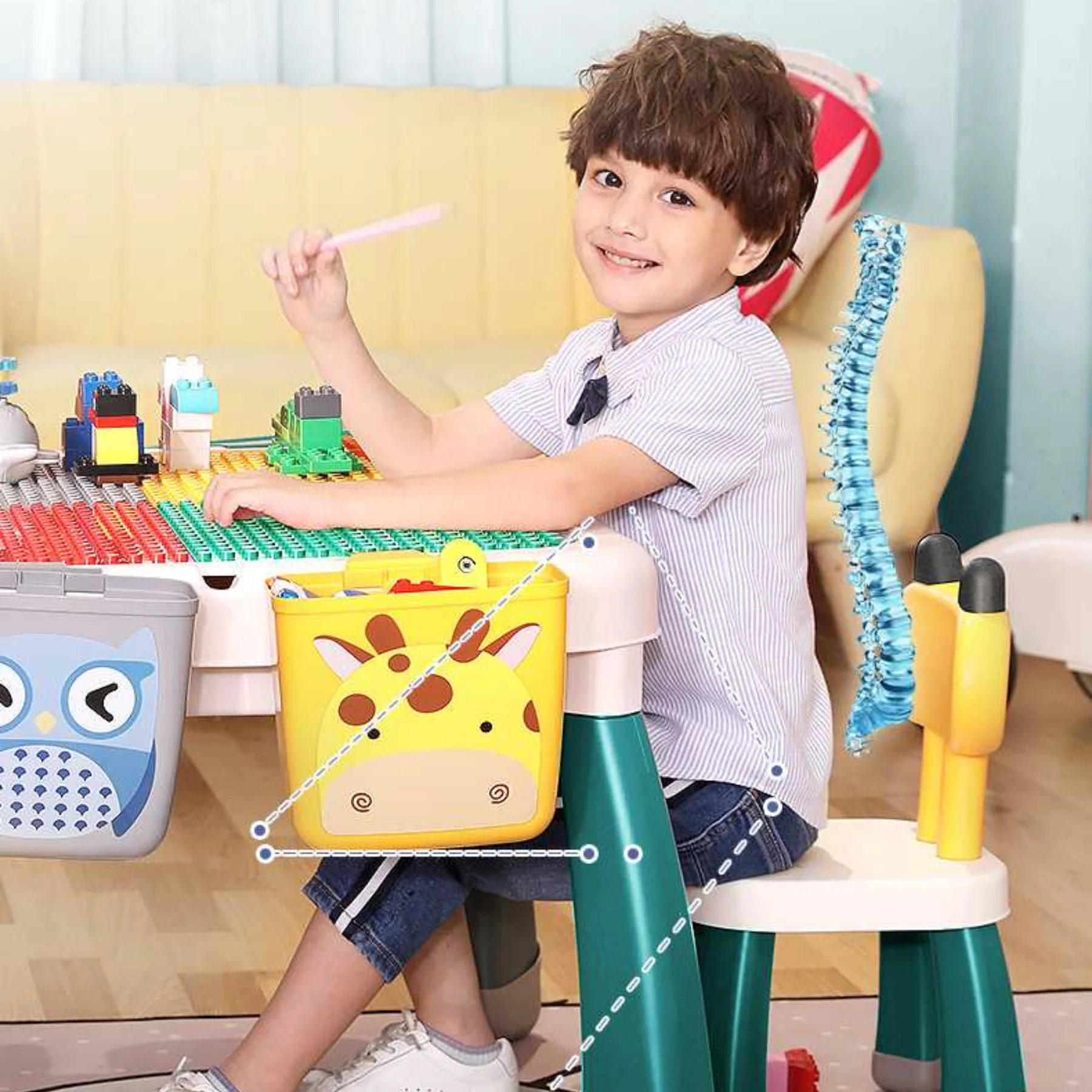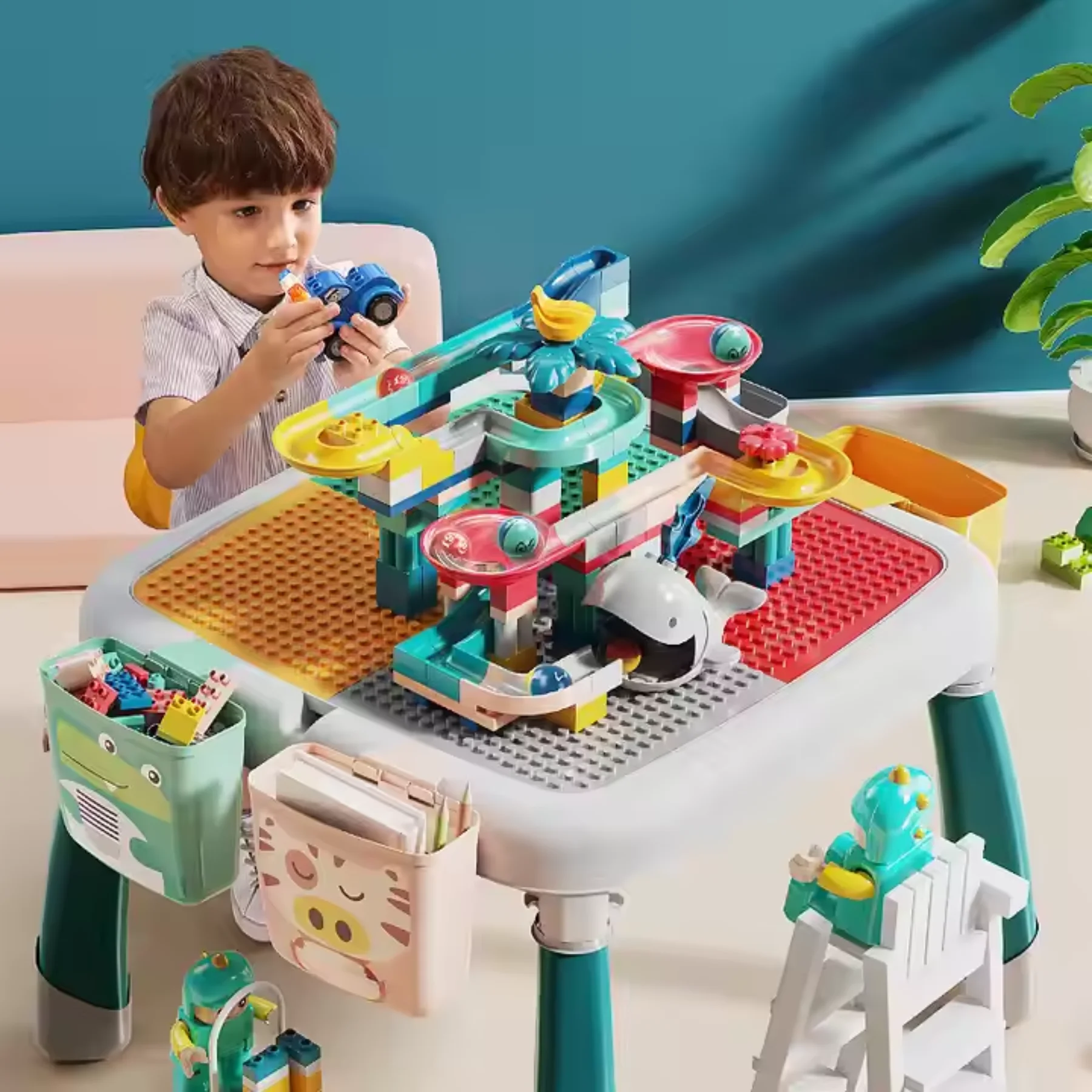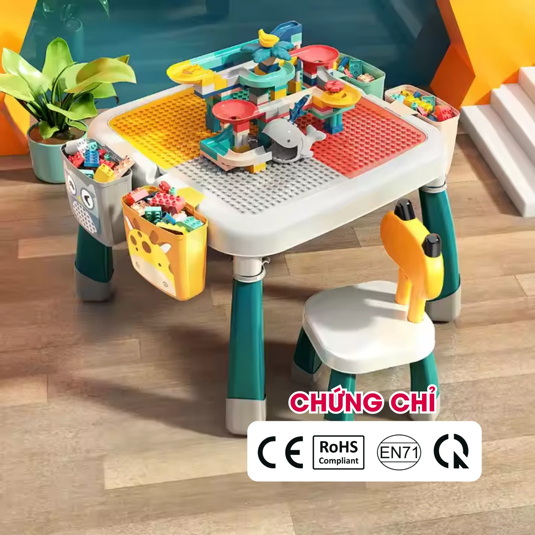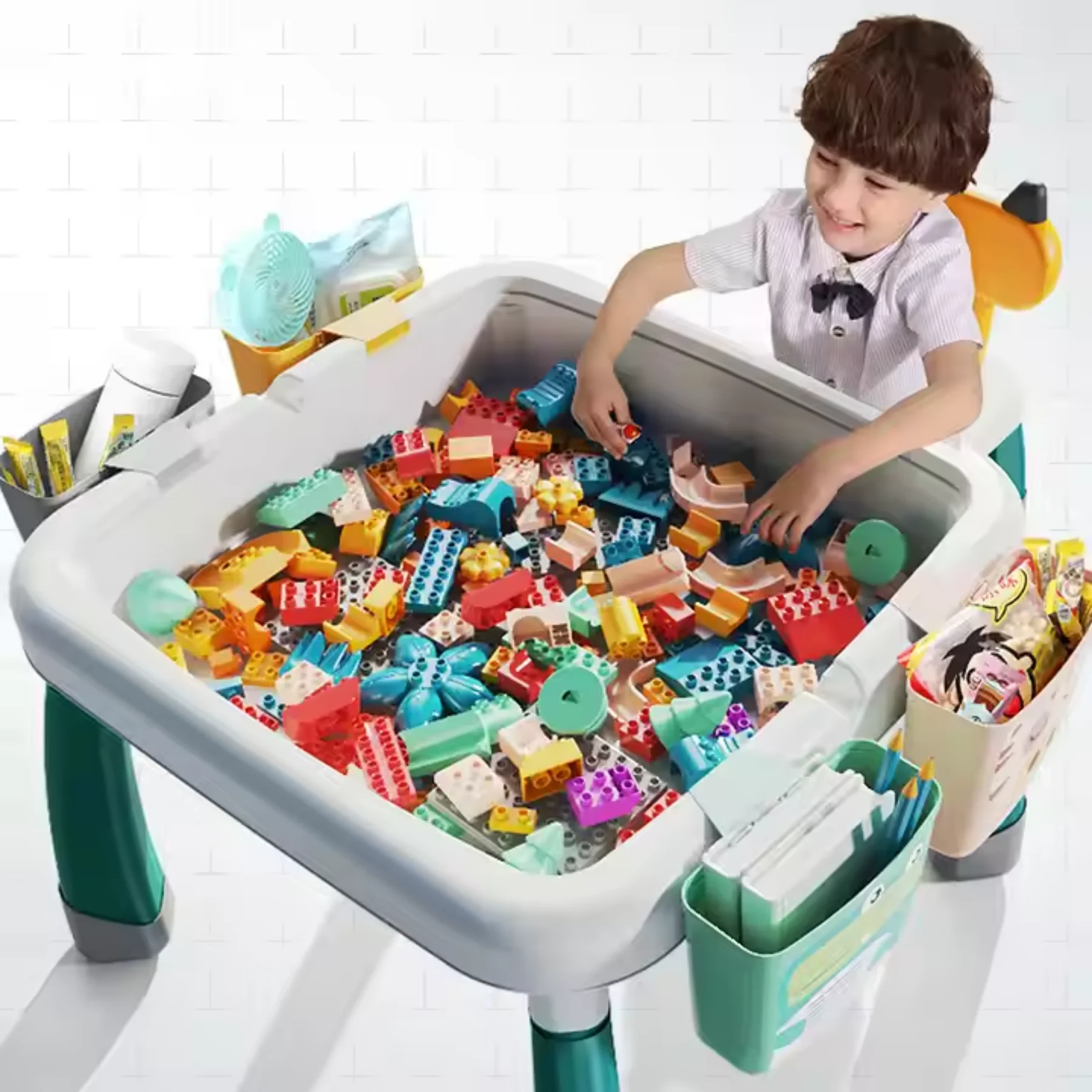 Bàn đa năng tích hợp: học viết, vẽ và lắp ráp.