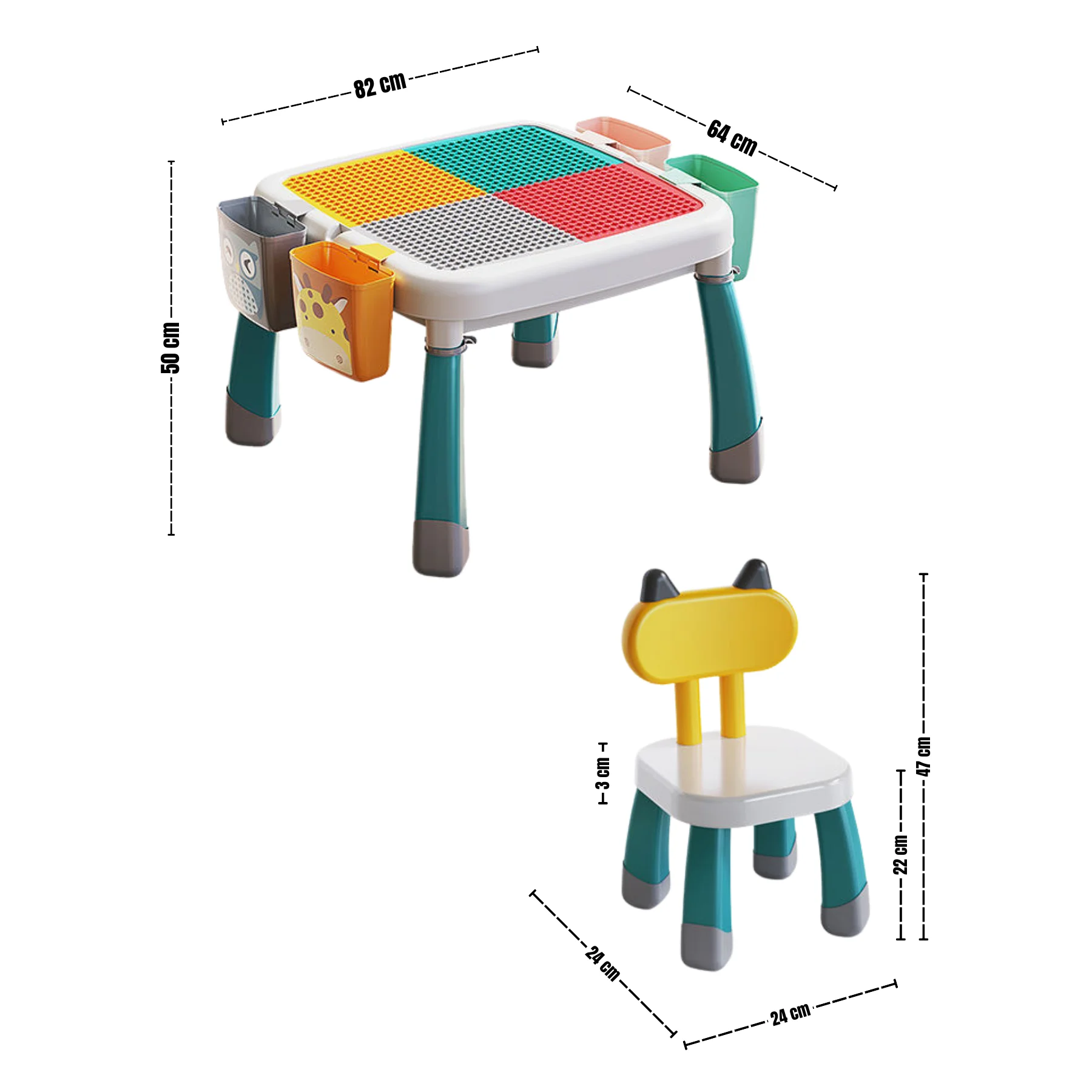 Bàn lắp ráp đa năng loại lớn FEELO (1 bàn + 1 ghế) FL1663 gồm 1 bàn, 1 ghế và 60 chi tiết lắp ghép màu sắc. Thiết kế thông minh với mặt bàn 2 chức năng: vừa học viết, vừa lắp ráp, giúp bé sáng tạo, rèn luyện kỹ năng và chơi độc lập an toàn.