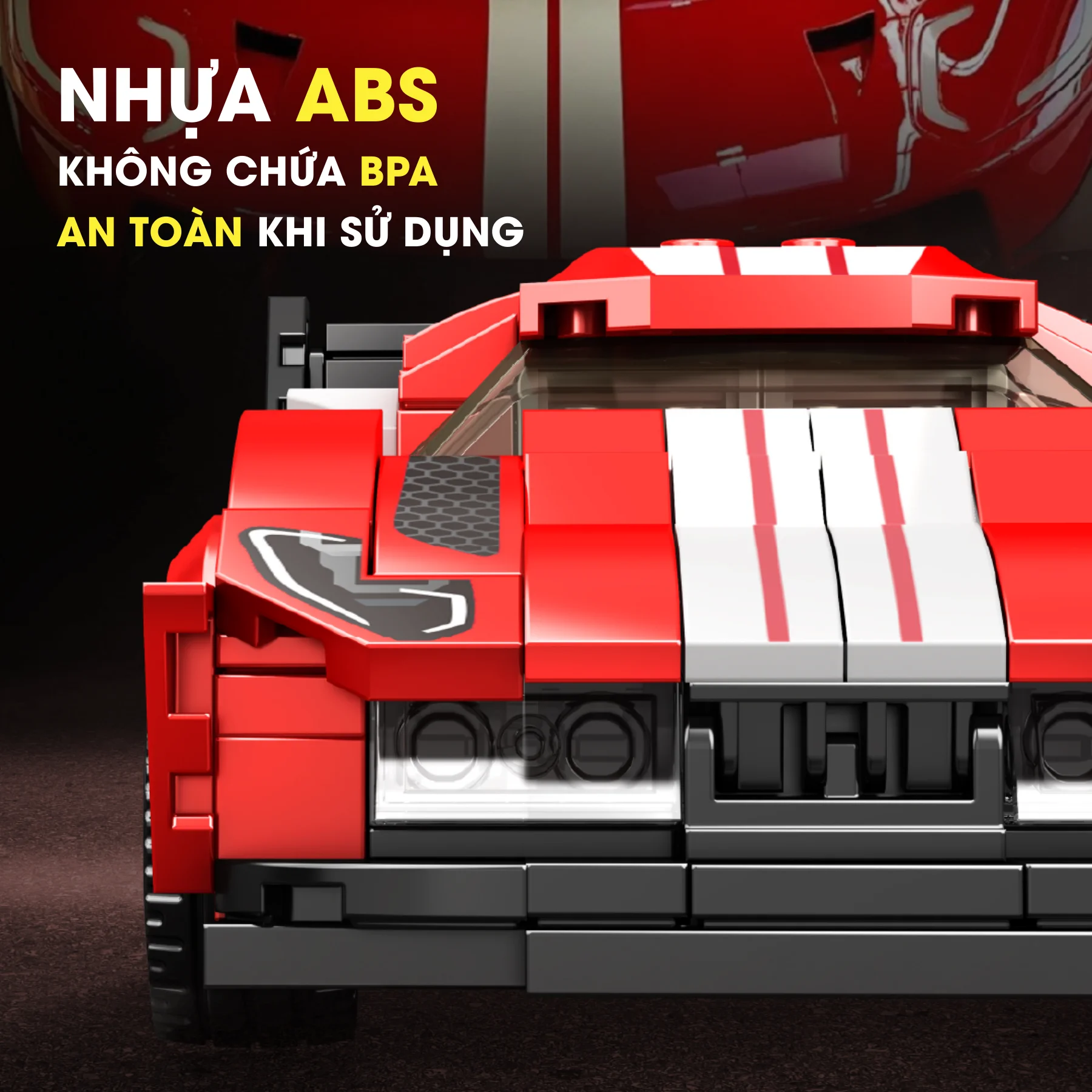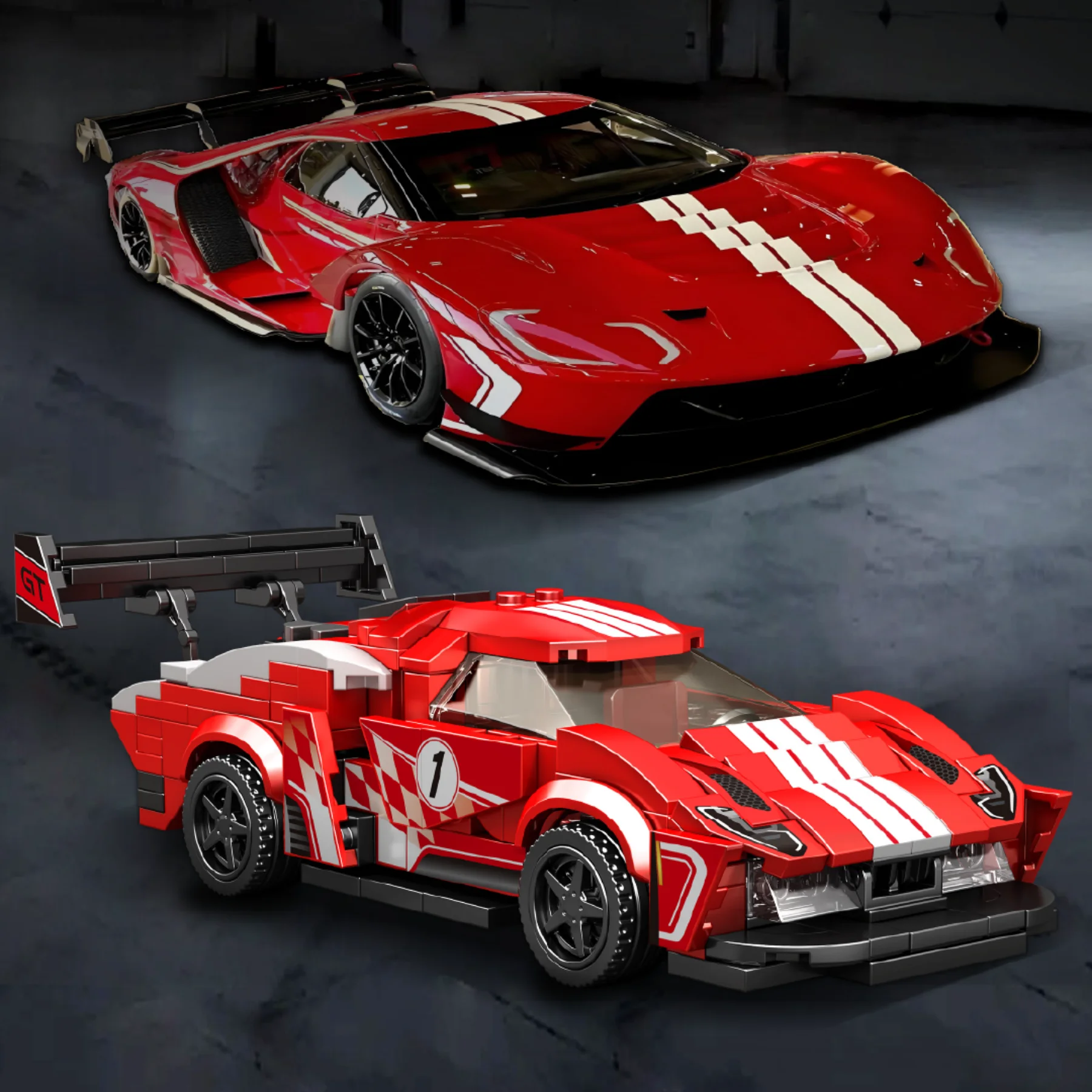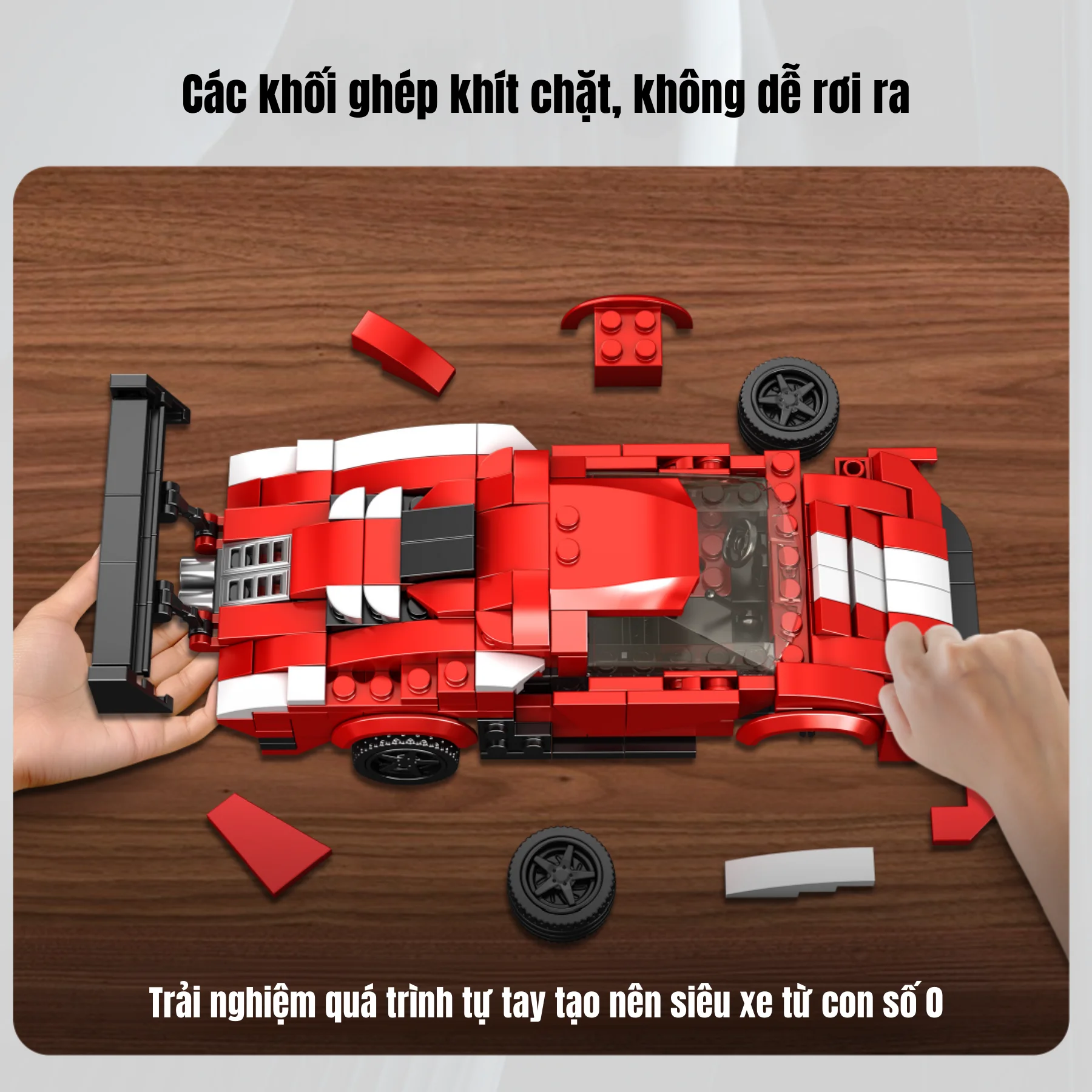 Thiết kế mô phỏng xe thể thao chân thực, phù hợp cho các bé yêu thích lắp ráp và sáng tạo.