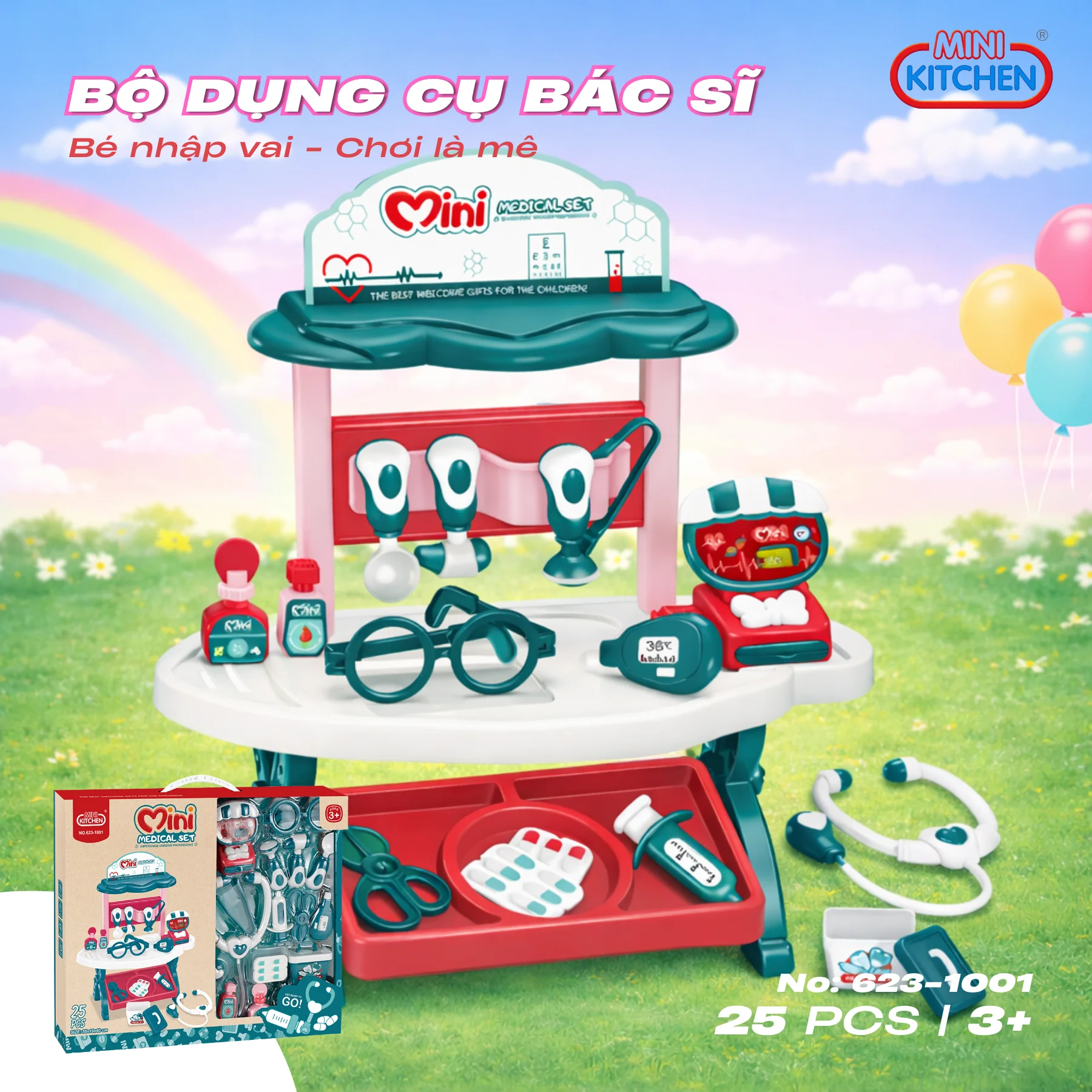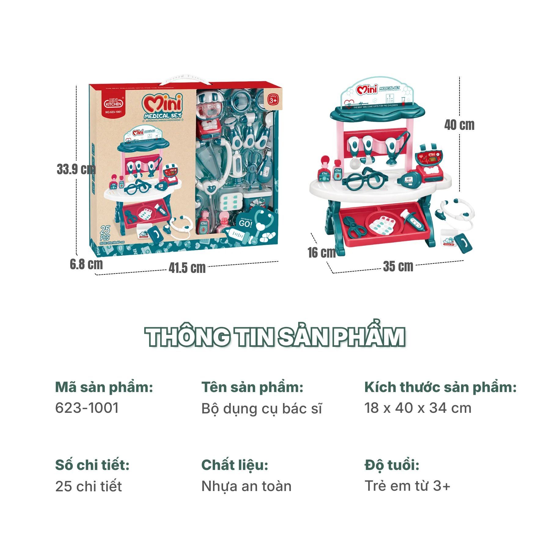 Bộ dụng cụ bác sĩ Mini Medical Set 623-1001 là món đồ chơi nhập vai lý tưởng giúp bé vừa chơi vui vừa học hỏi, phát triển kỹ năng xã hội và trí tưởng tượng phong phú ngay từ những năm đầu đời.