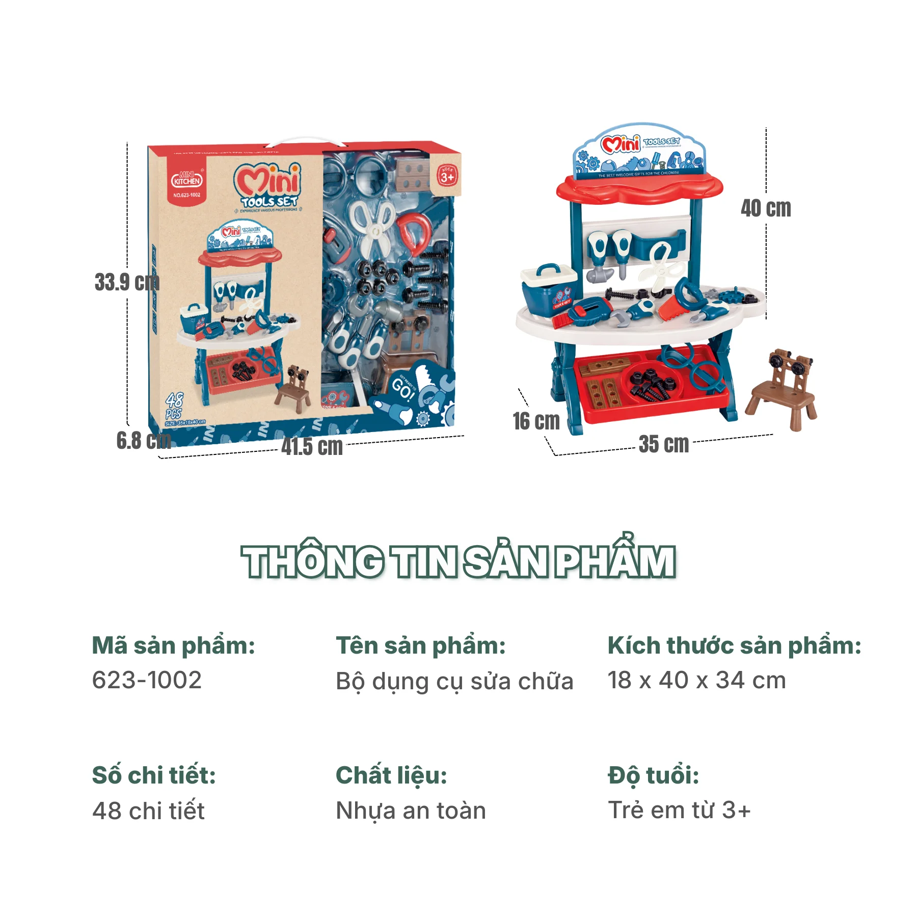 Bộ dụng cụ sửa chữa Mini Tools Set 623-1002 là món đồ chơi nhập vai giúp bé vừa chơi vui, vừa học hỏi và phát triển kỹ năng một cách tự nhiên.