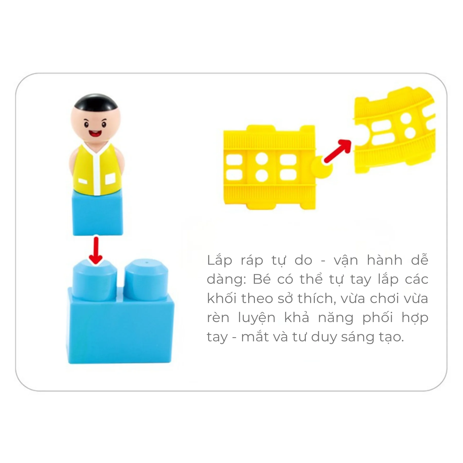Các toa tàu có thể tách rời, lắp ráp tùy ý, rèn luyện kỹ năng thao tác tay và khả năng tưởng tượng sáng tạo.