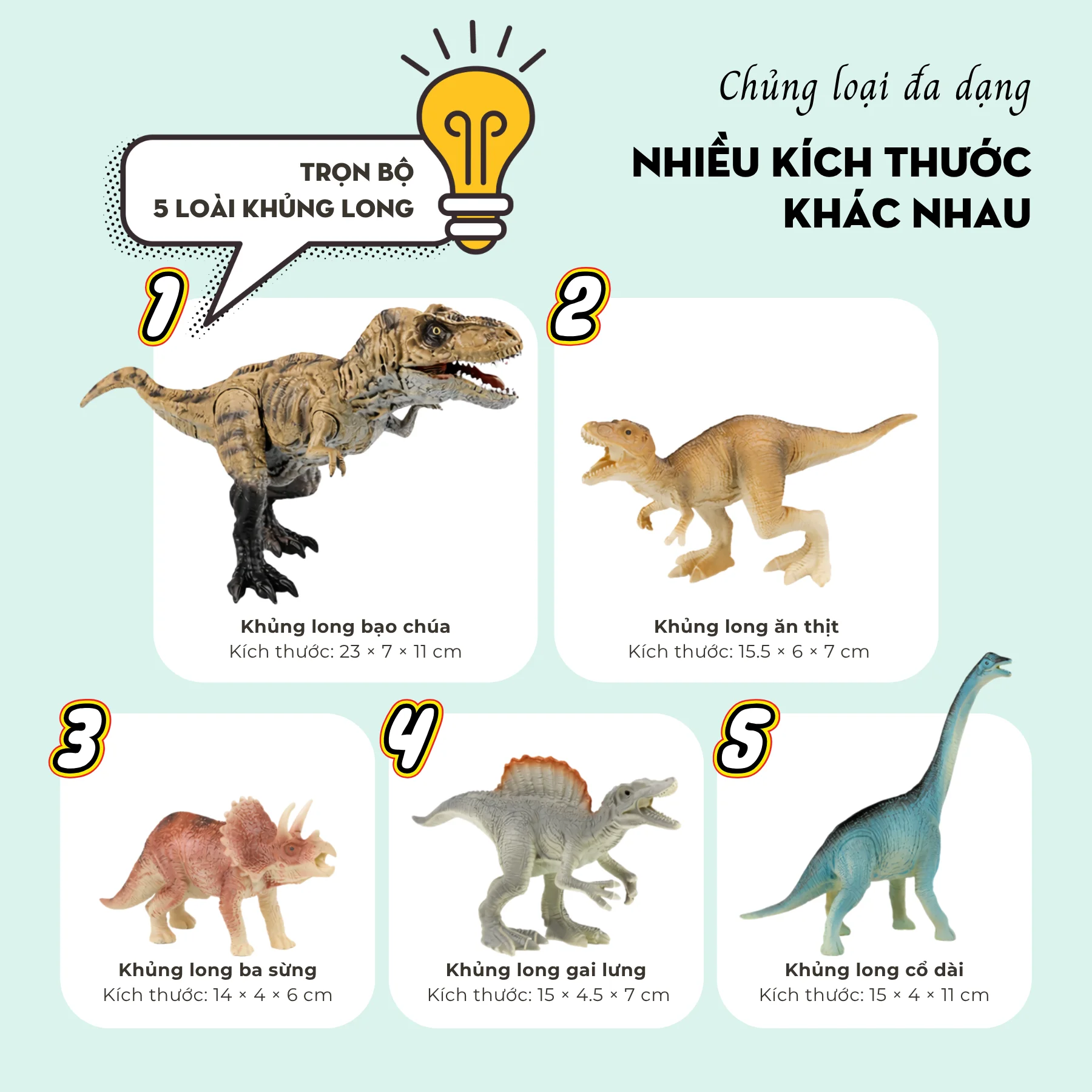 - Số lượng: 5 mô hình khủng long