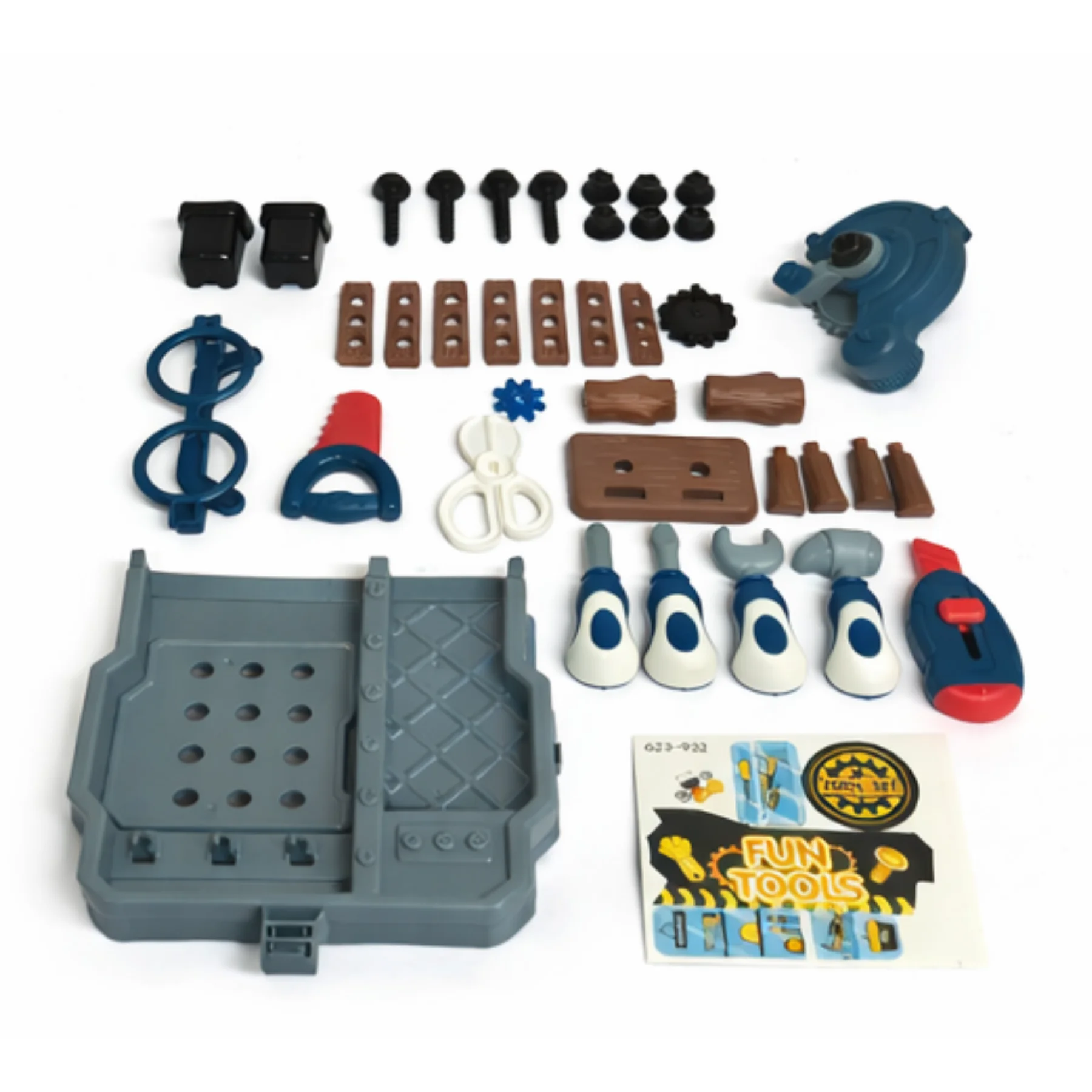 Bộ sản phẩm gồm tổng cộng 59 chi tiết, cho phép bé sáng tạo nhiều tình huống chơi khác nhau: sửa chữa đồ dùng, lắp ráp chi tiết, sắp xếp bàn làm việc… Qua đó kích thích trí tưởng tượng, khả năng nhập vai và phát triển kỹ năng giao tiếp khi bé chơi cùng bạn bè hoặc người thân.