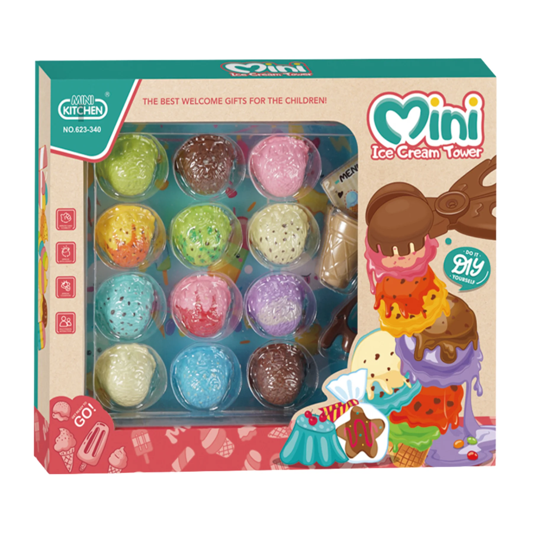 Bộ xếp kem đồ chơi Mini Kitchen 623-340 được thiết kế sinh động với nhiều viên kem nhiều màu sắc, mô phỏng quầy kem mini đáng yêu, mang đến cho bé trải nghiệm nhập vai bán kem và sáng tạo món tráng miệng theo trí tưởng tượng riêng.