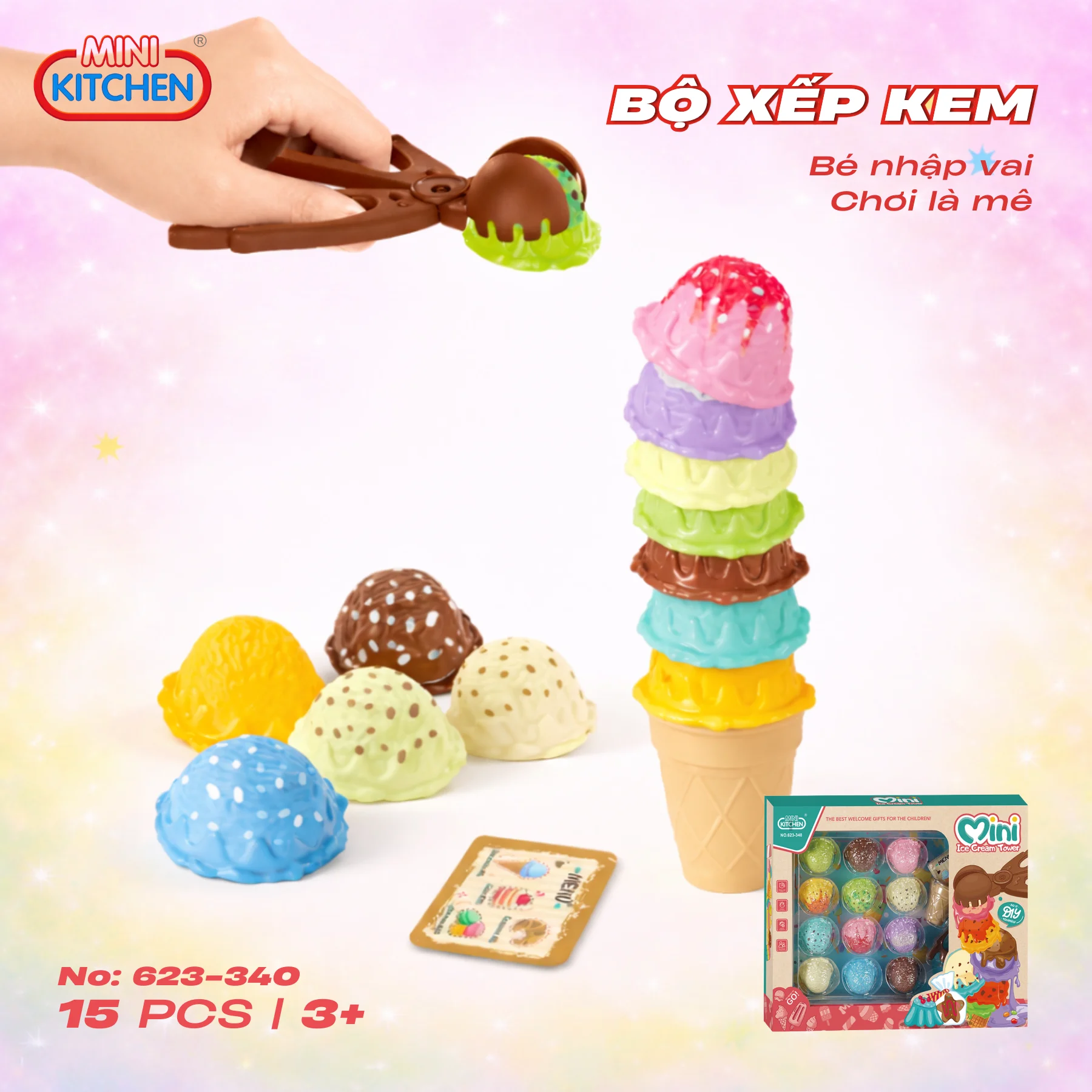 Bộ xếp kem Mini Kitchen 623-340 là món đồ chơi nhập vai thú vị giúp bé vừa chơi vui vừa rèn luyện tư duy và kỹ năng khéo léo một cách tự nhiên.