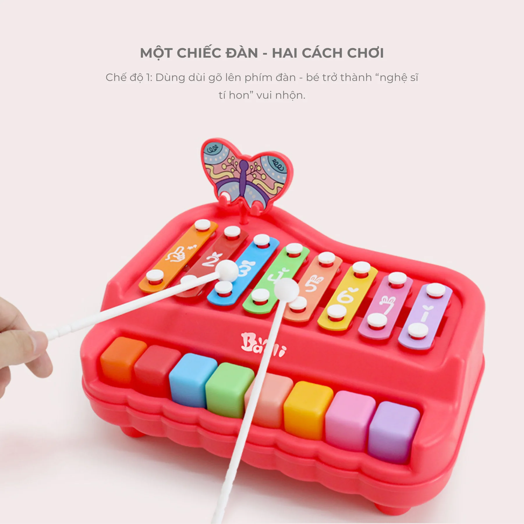 Đàn 2 trong 1, vừa gõ vừa bấm, giúp bé làm quen âm nhạc một cách tự nhiên.