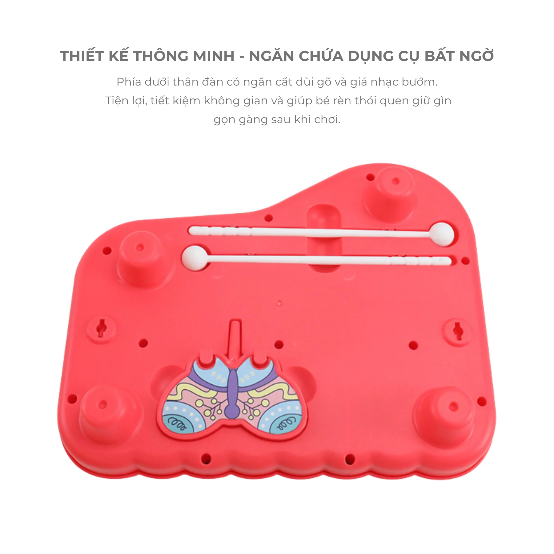 - Dùi gõ và bảng nhạc có thể cất dưới đáy đàn, giúp bé rèn thói quen ngăn nắp.