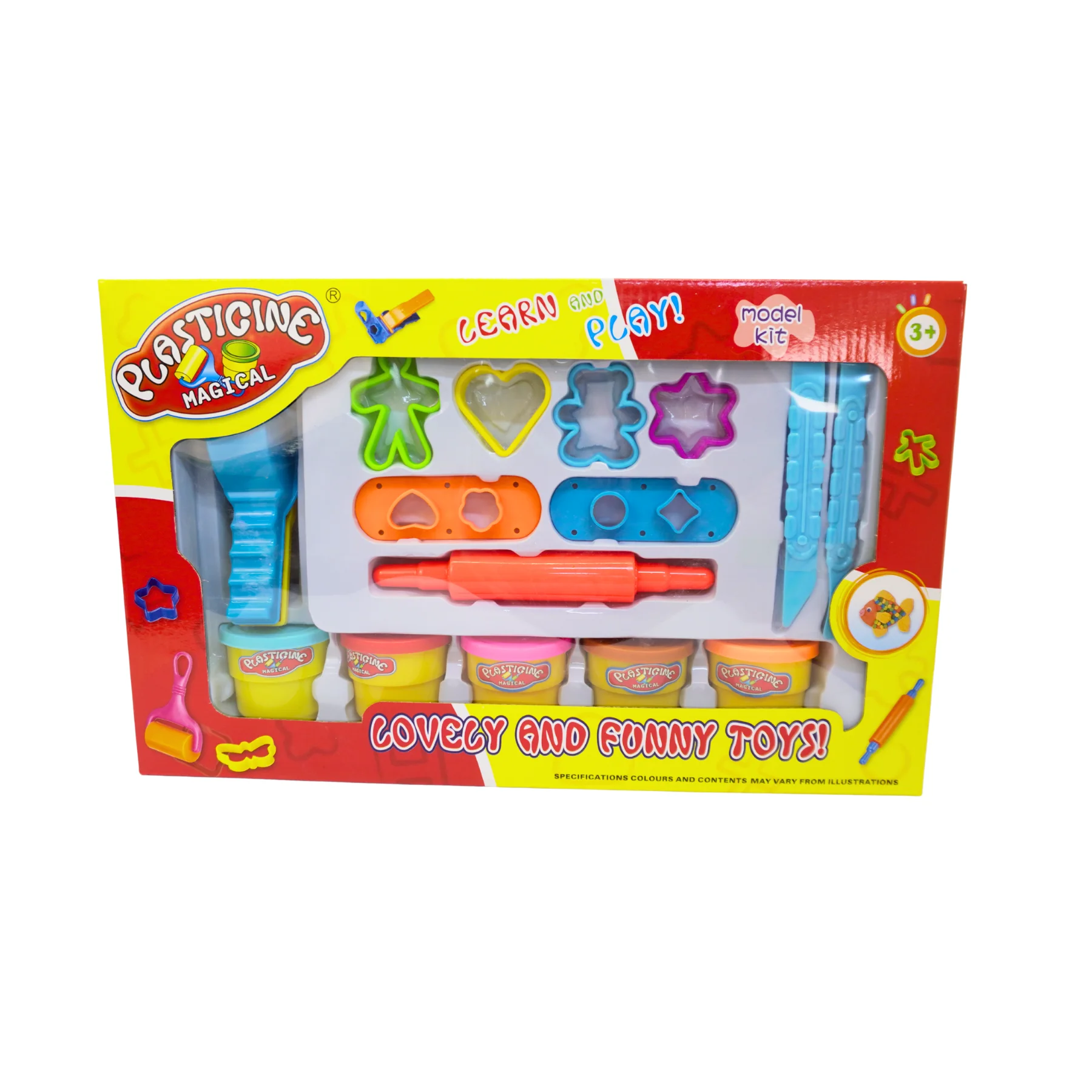 Bộ đất nặn sáng tạo Plasticine Magic được thiết kế với nhiều màu sắc bắt mắt cùng các khuôn nặn hình ngôi sao, trái tim, nhân vật và nhiều hình dạng đáng yêu khác. Nhờ những dụng cụ hỗ trợ đi kèm như con lăn và dao cắt, bé có thể dễ dàng tạo nên nhiều mô hình khác nhau chỉ trong vài bước đơn giản.