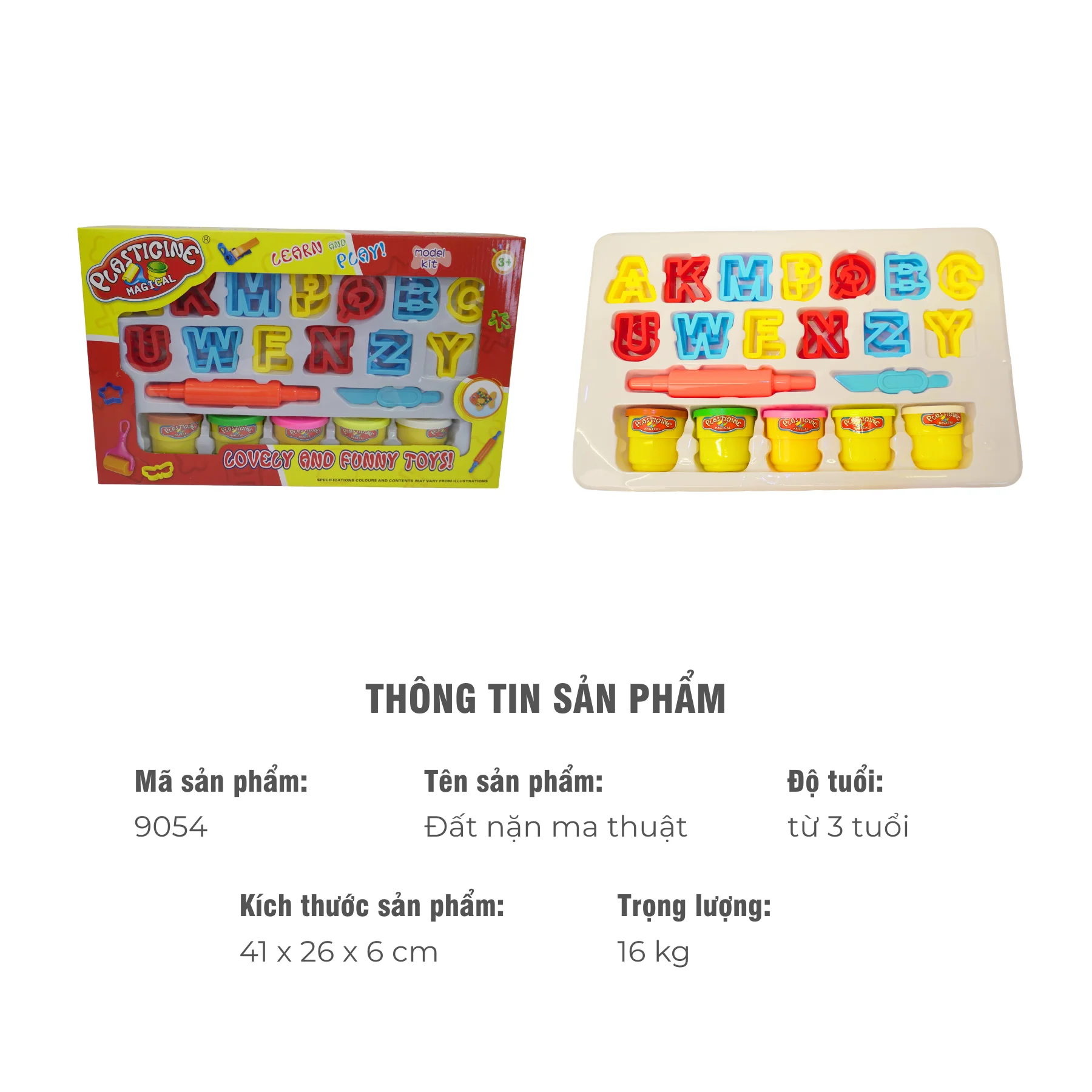 Đất nặn ma thuật Plasticine Magic model kit 9054 là bộ đồ chơi sáng tạo dành cho trẻ từ 3 tuổi trở lên, giúp bé vừa chơi vừa học thông qua hoạt động nặn và tạo hình chữ cái. Bộ sản phẩm gồm nhiều hộp đất nặn màu sắc tươi sáng kết hợp với các khuôn chữ cái và dụng cụ tạo hình, giúp bé dễ dàng tạo ra các chữ cái tiếng Anh và nhiều hình dạng thú vị.