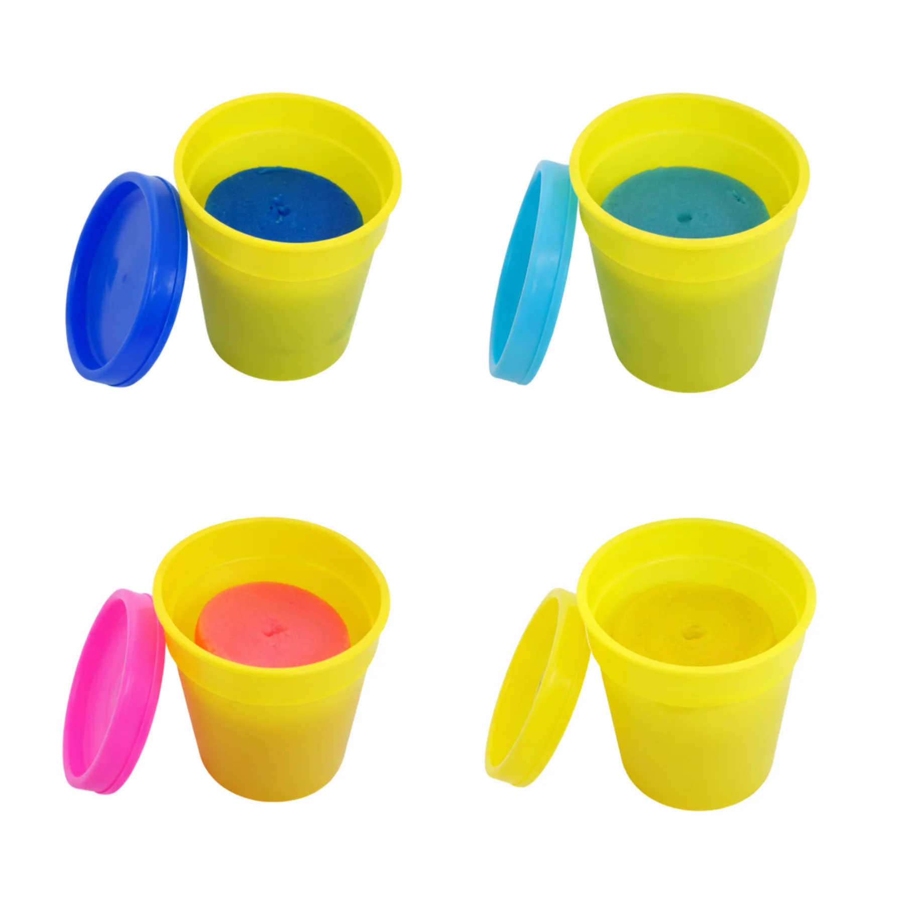 Bộ sản phẩm gồm nhiều hộp đất nặn với màu sắc rực rỡ như xanh dương, xanh ngọc, hồng và vàng. Bé có thể trộn các màu lại với nhau để tạo ra nhiều màu mới và sáng tạo nên những mô hình độc đáo.