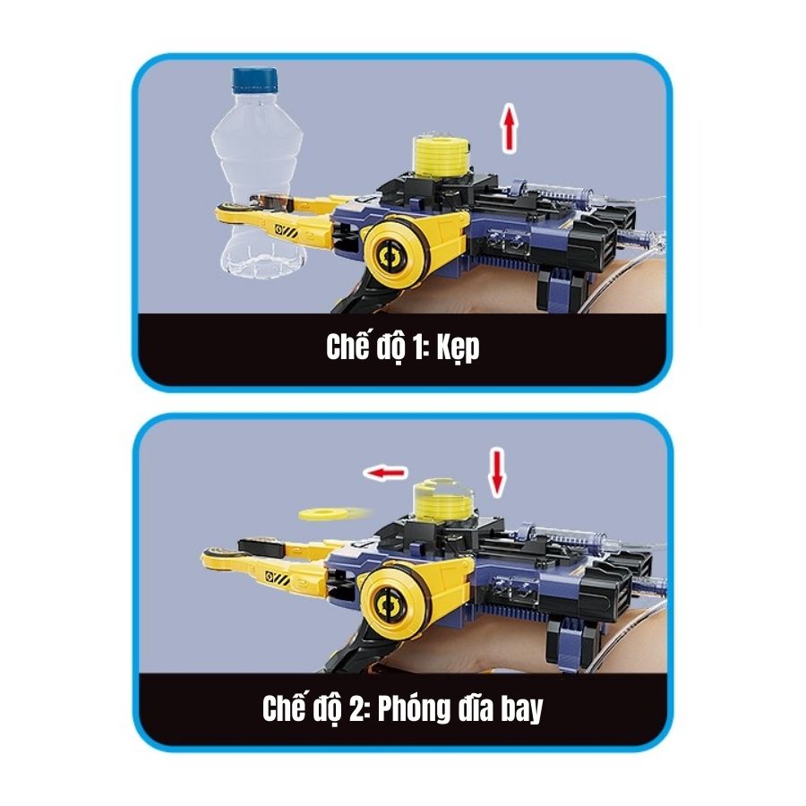 Lắp ráp thành cánh tay robot đeo tay với 2 chế độ: gắp vật và bắn đĩa bay.