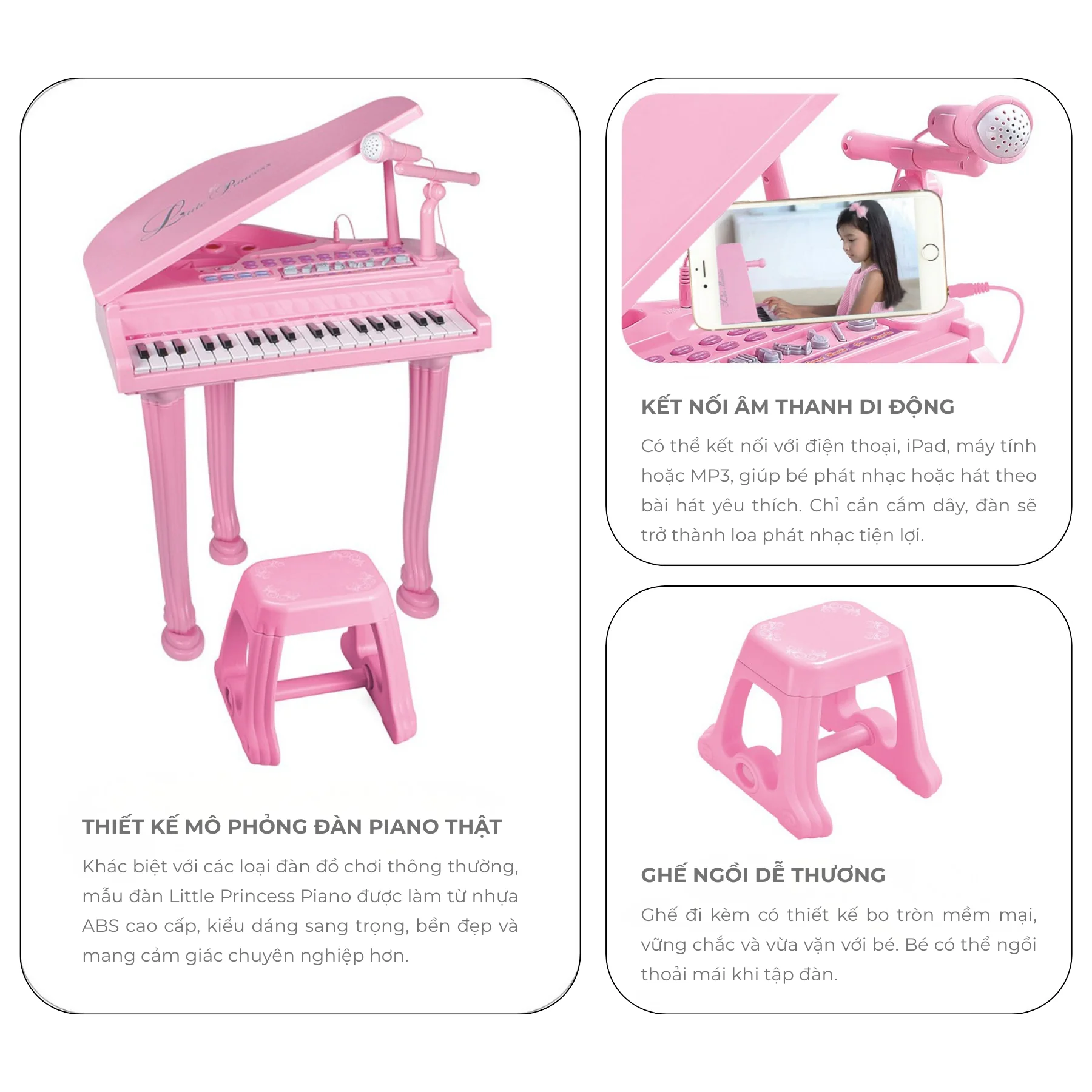 Thiết kế mô phỏng đàn piano cổ điển, kết hợp họa tiết công chúa dễ thương.