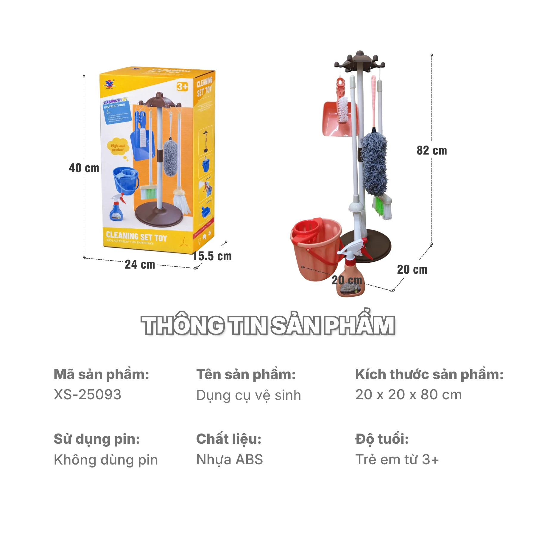 Bộ Dụng cụ vệ sinh XS-25118 là lựa chọn phù hợp cho bé yêu thích trò chơi nhập vai gia đình, vừa chơi vui vừa hình thành kỹ năng sống tích cực mỗi ngày.