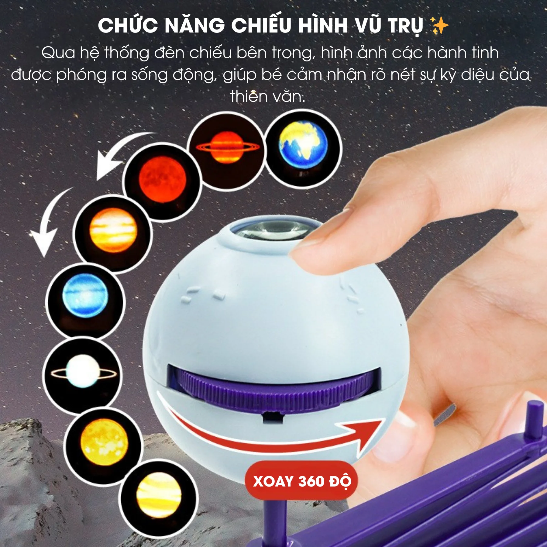 Chuyển động xoay 360° mô phỏng quỹ đạo hành tinh.
