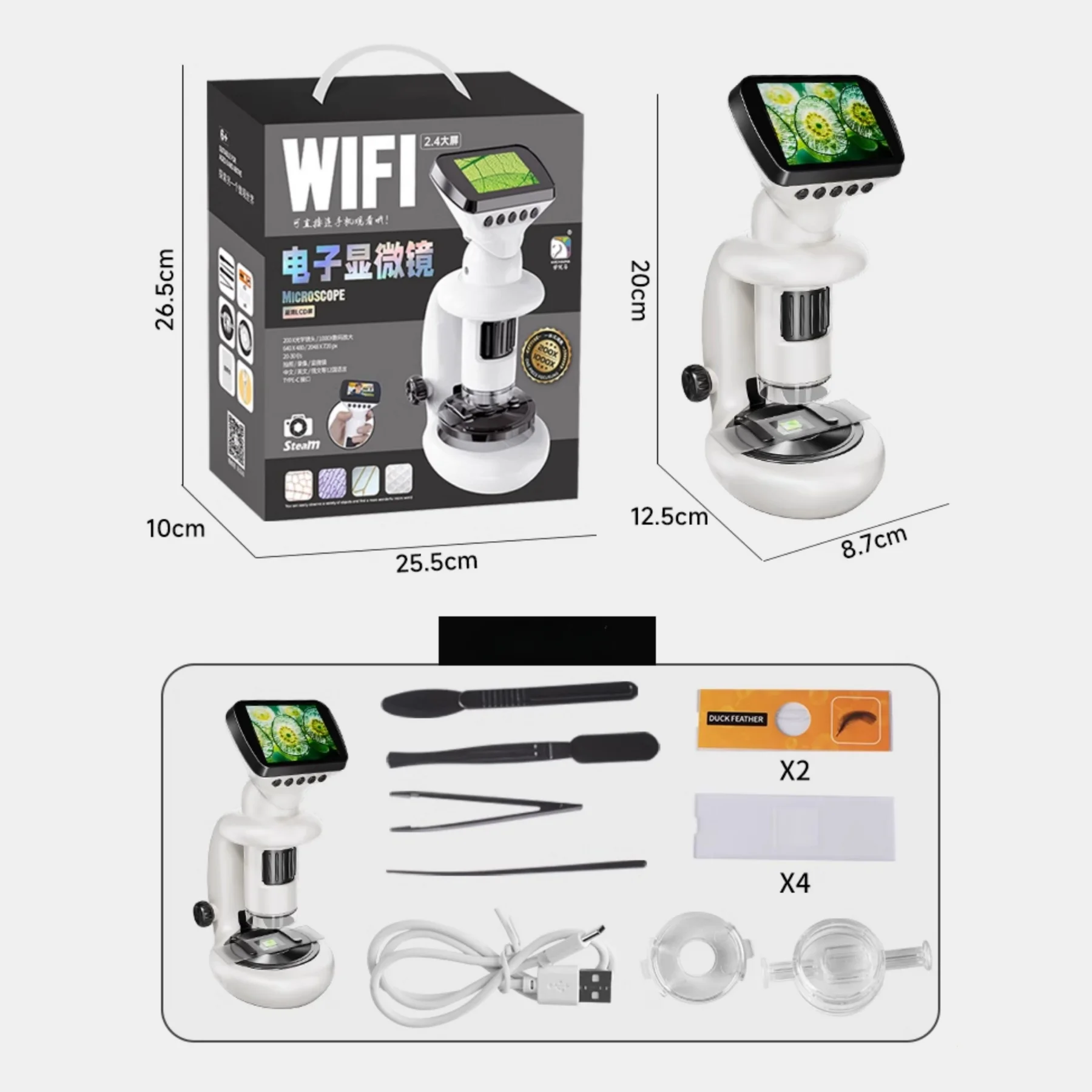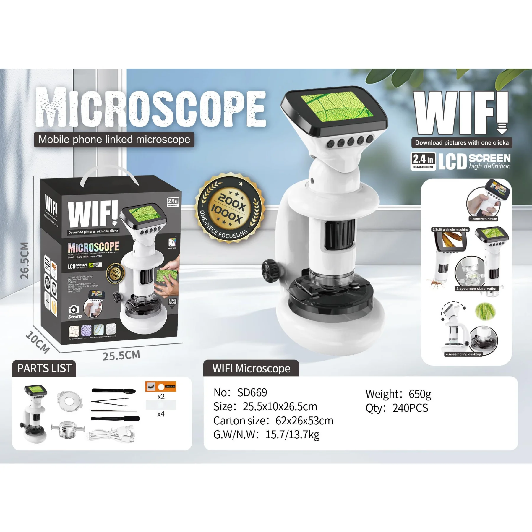 Đồ chơi kính hiển vi điện tử wifi LCD 1000X SCIENCE HORSE SD669 giúp việc khám phá thế giới vi mô trở nên dễ dàng và thú vị hơn bao giờ hết. Sản phẩm tích hợp màn hình LCD 2.4 inch, kết nối Wifi với điện thoại, cho phép chụp và tải ảnh nhanh chóng. Đạt tiêu chuẩn an toàn CE – EN71 – RoHS, phù hợp cho bé từ 8 tuổi, học sinh, giáo viên và phụ huynh yêu thích khoa học.
