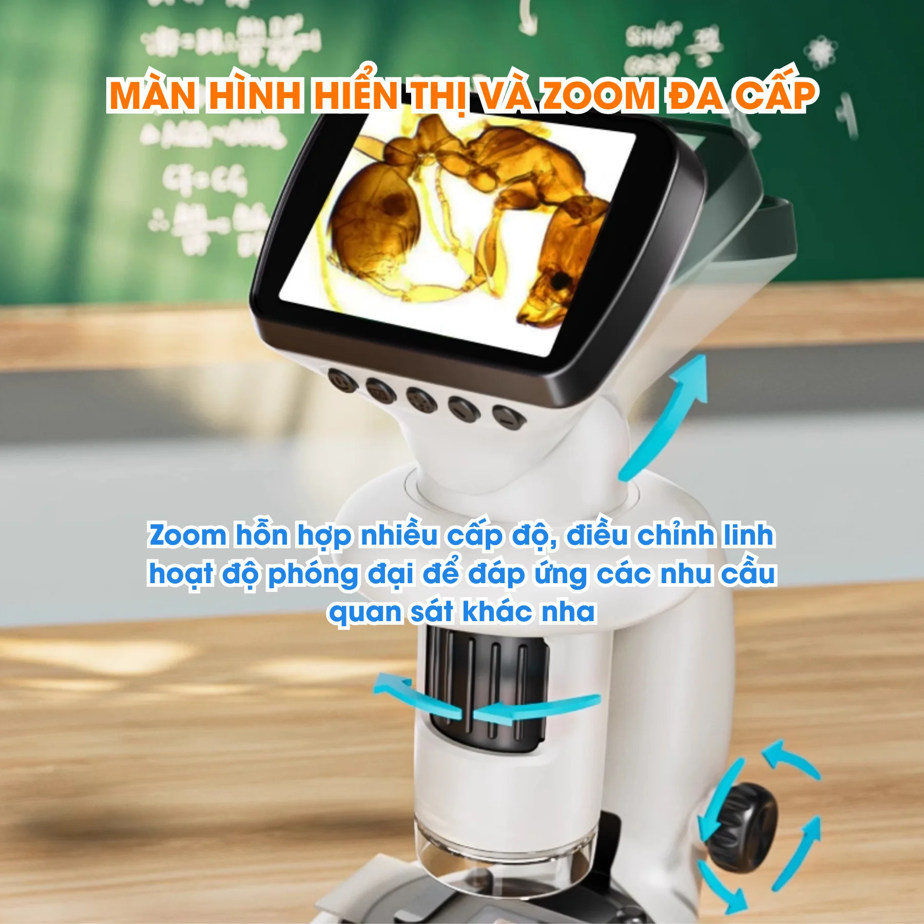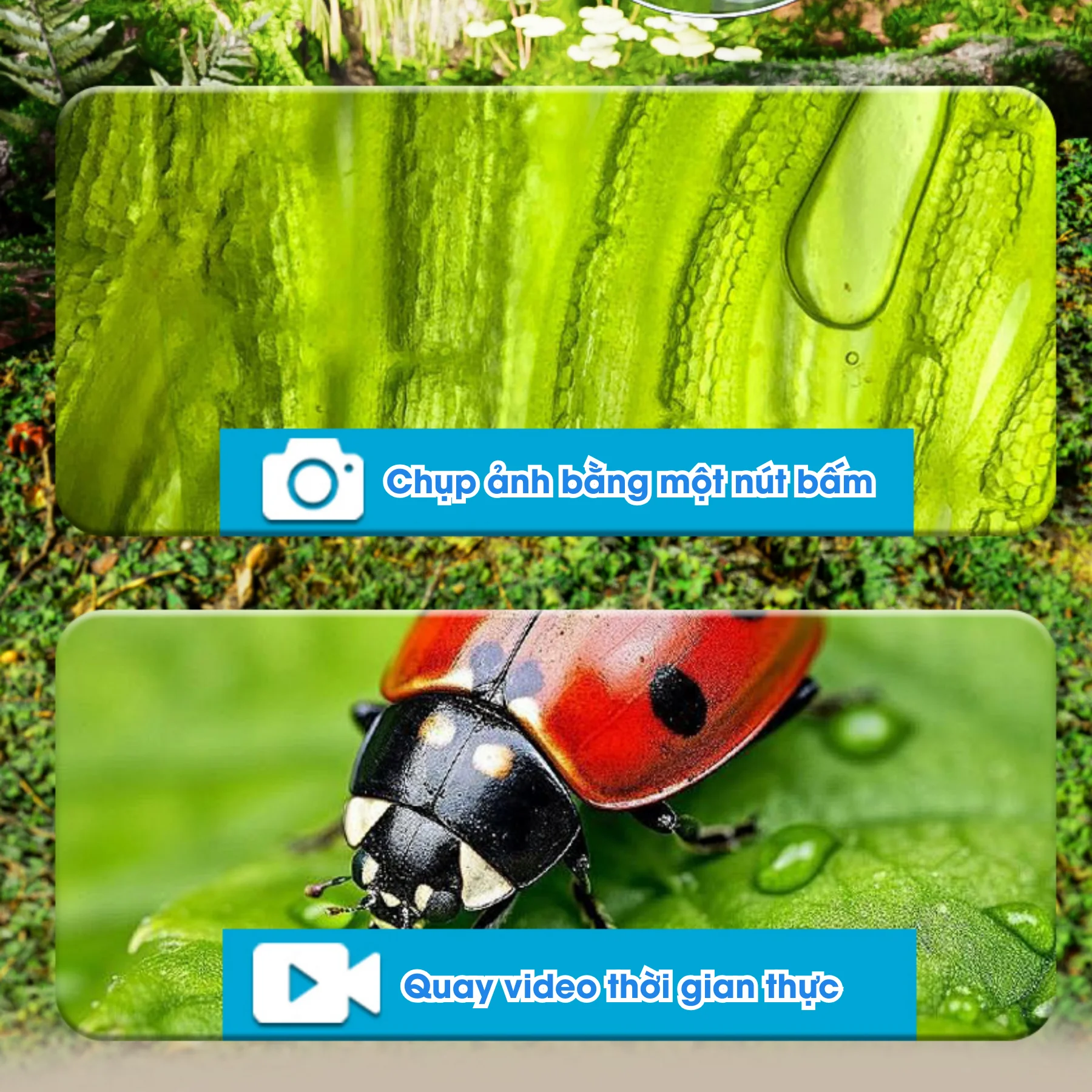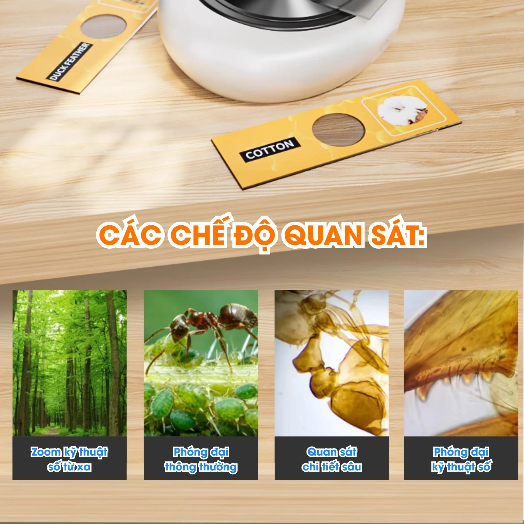 Phóng đại 200x – 1000x giúp quan sát rõ nét vi khuẩn, tế bào, côn trùng, thực vật…