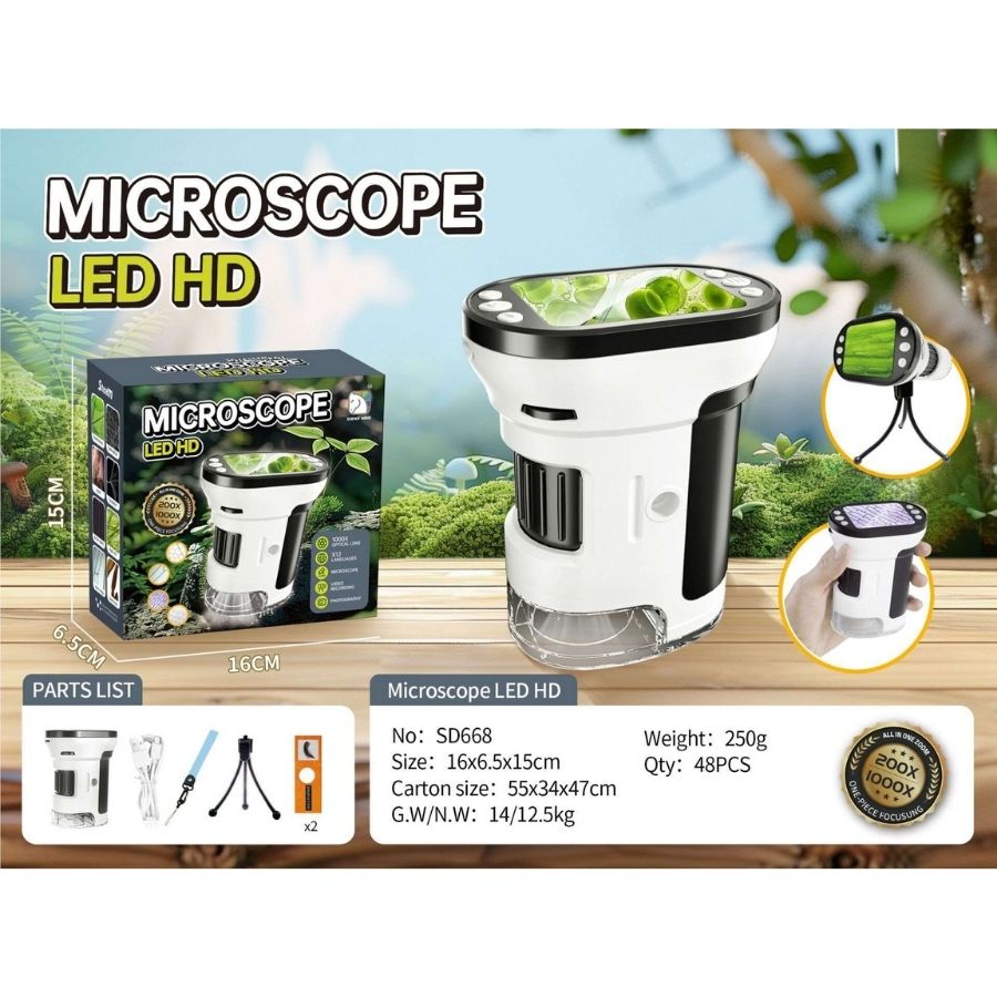Đồ chơi kính hiển vi LED Mini HD 1000X SCIENCE HORSE SD668 là thiết bị lý tưởng dành cho bé yêu thích khoa học, giúp quan sát cận cảnh vi sinh vật, thực vật, tế bào với độ phóng đại lên tới 1000X. Tích hợp màn hình LED hiển thị trực tiếp, không cần điện thoại, sản phẩm mang đến trải nghiệm học tập thú vị và sống động. Đạt chứng nhận an toàn CE – EN71 – RoHS.