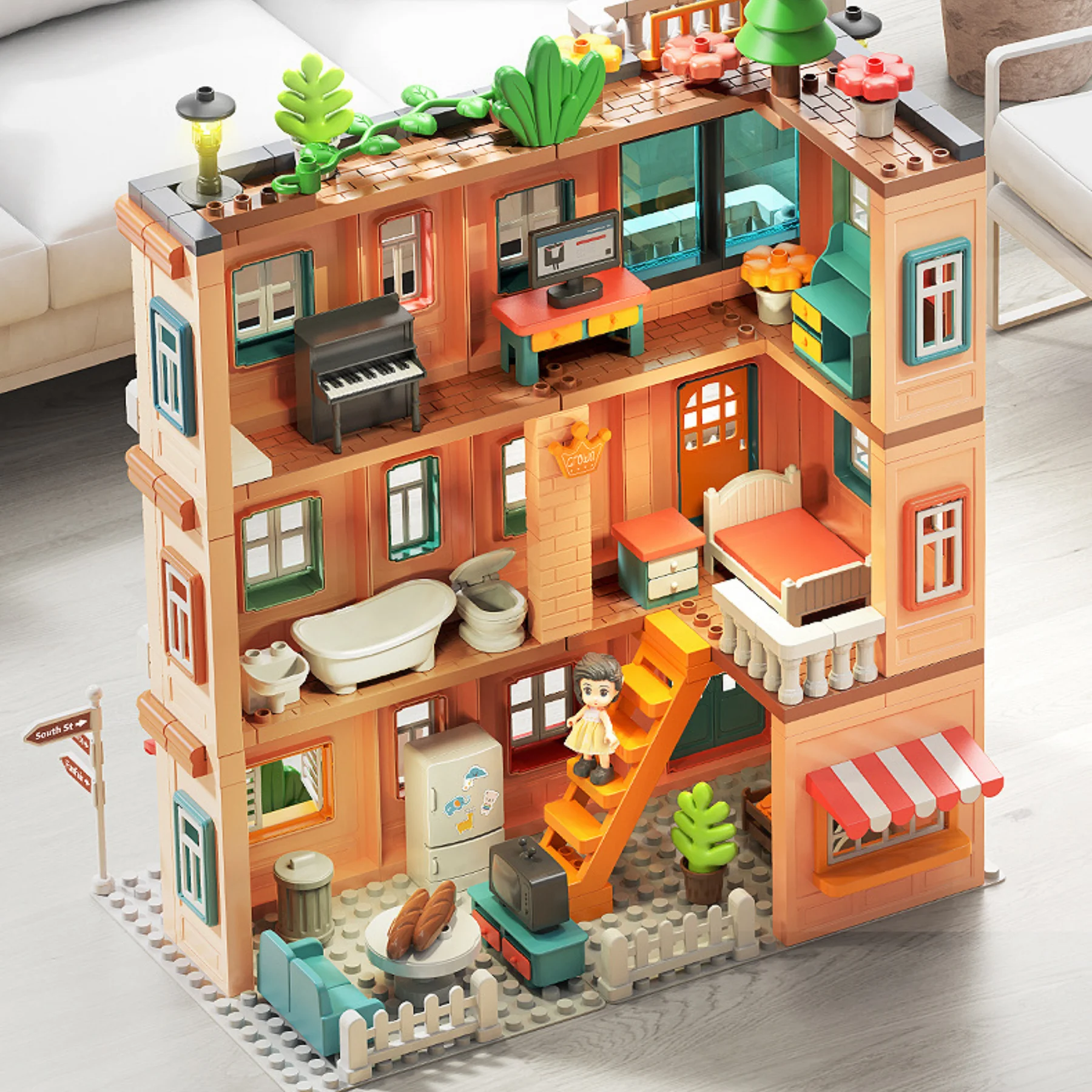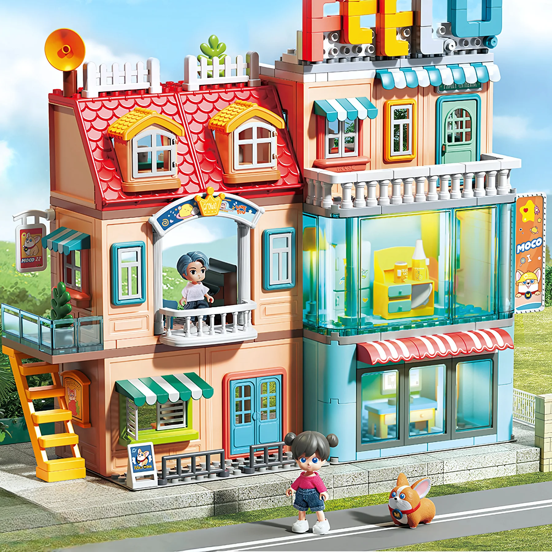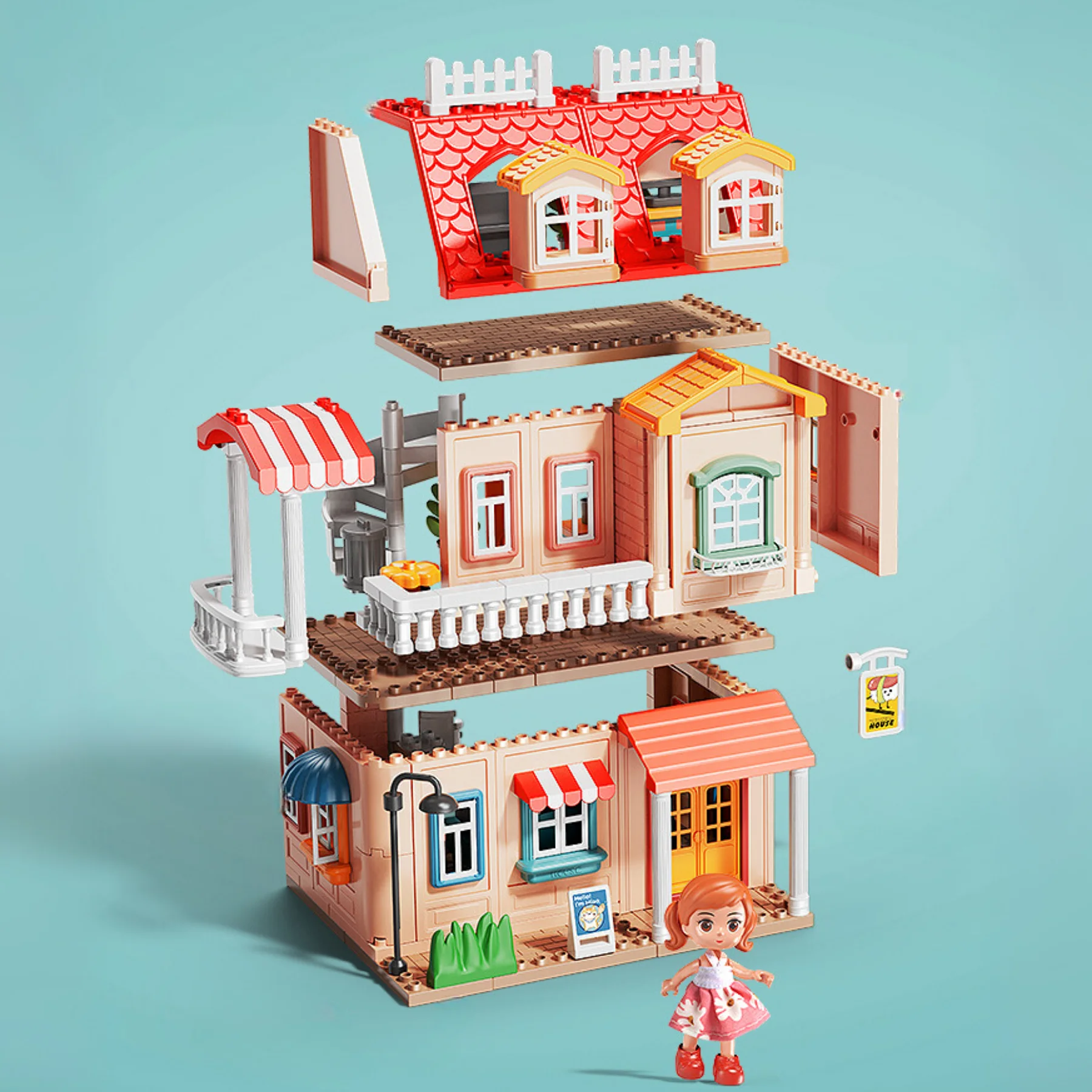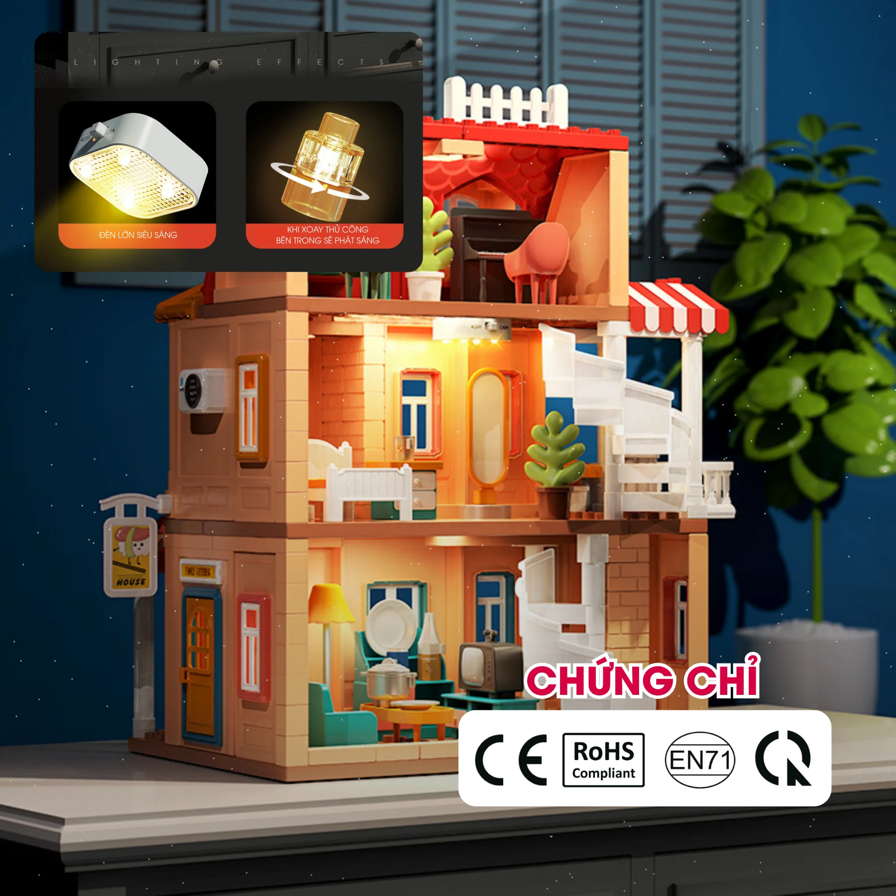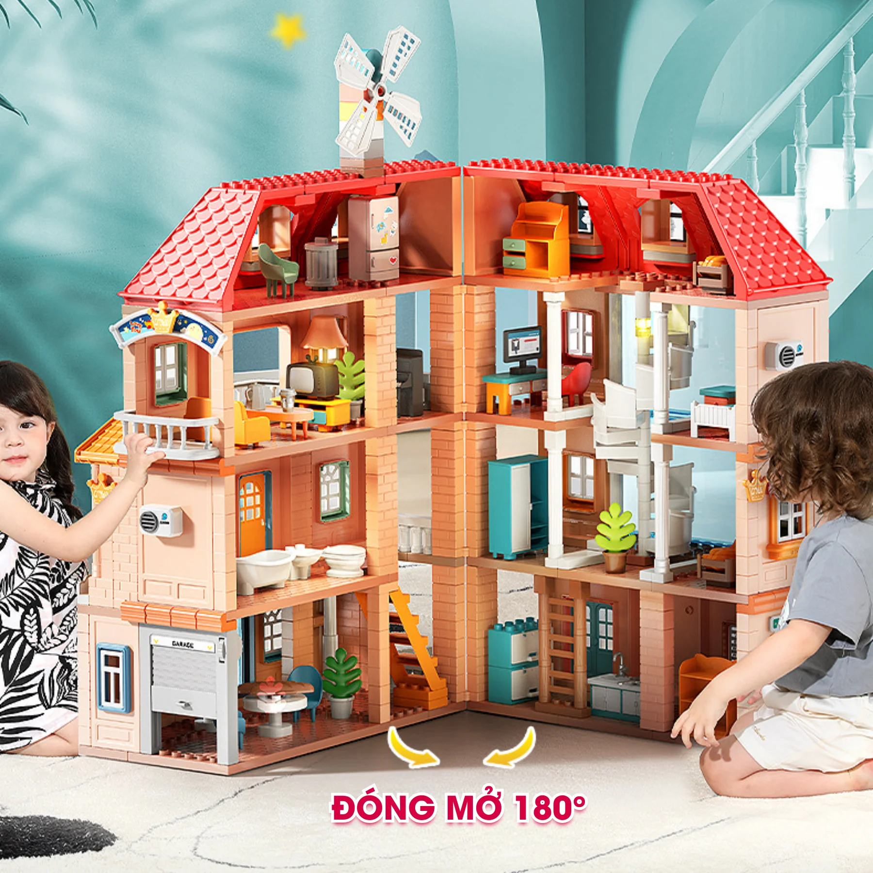 Lắp ráp thành mô hình biệt thự nhiều tầng, tiện nghi và sinh động.