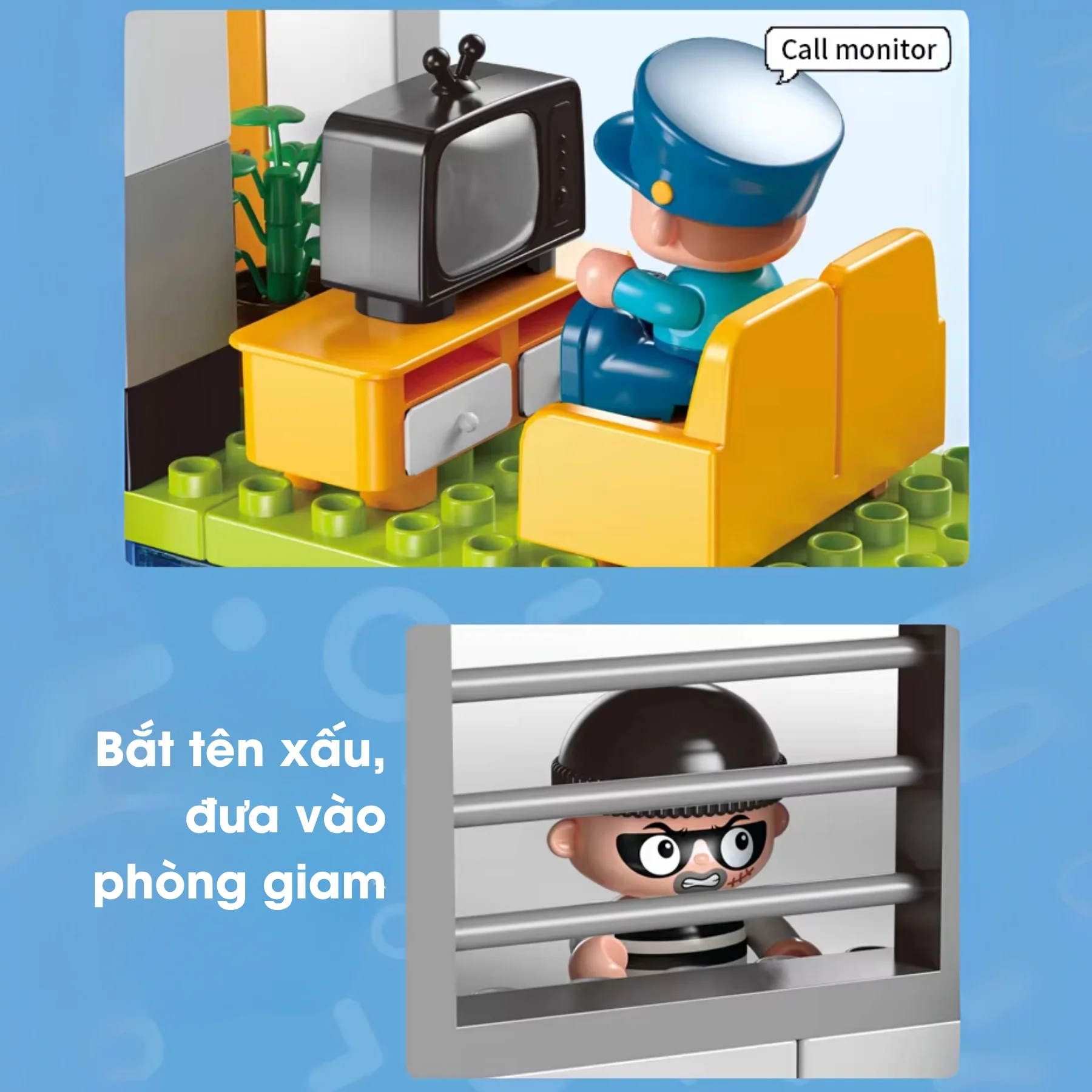 Đồ chơi lắp ráp đồn công an mini FEELO FL42005 gồm 63 chi tiết, giúp bé hóa thân thành cảnh sát trưởng nhí, xây dựng mô hình thành phố mini, vừa chơi vừa phát triển tư duy và kỹ năng xã hội.