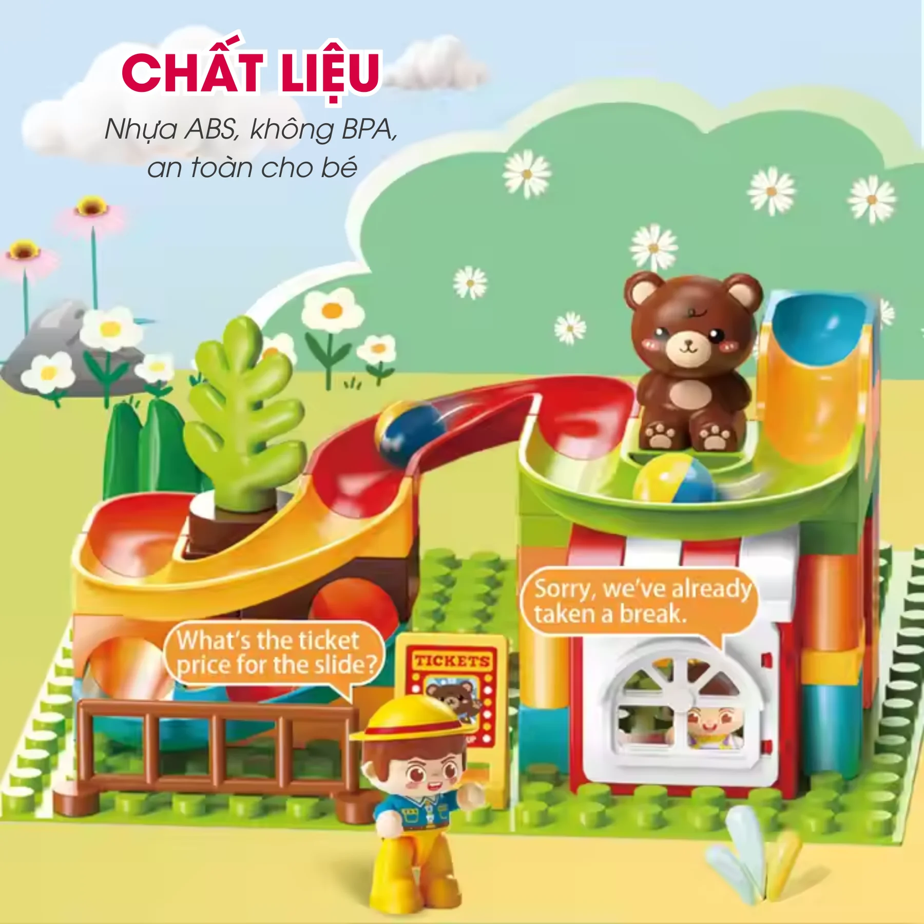 Đồ chơi lắp ráp khu vui chơi gấu con FEELO FL2327 với 81 chi tiết sinh động, mô phỏng vòng quay, cầu trượt, công viên mini giúp bé 3+ vừa học vừa chơi sáng tạo.