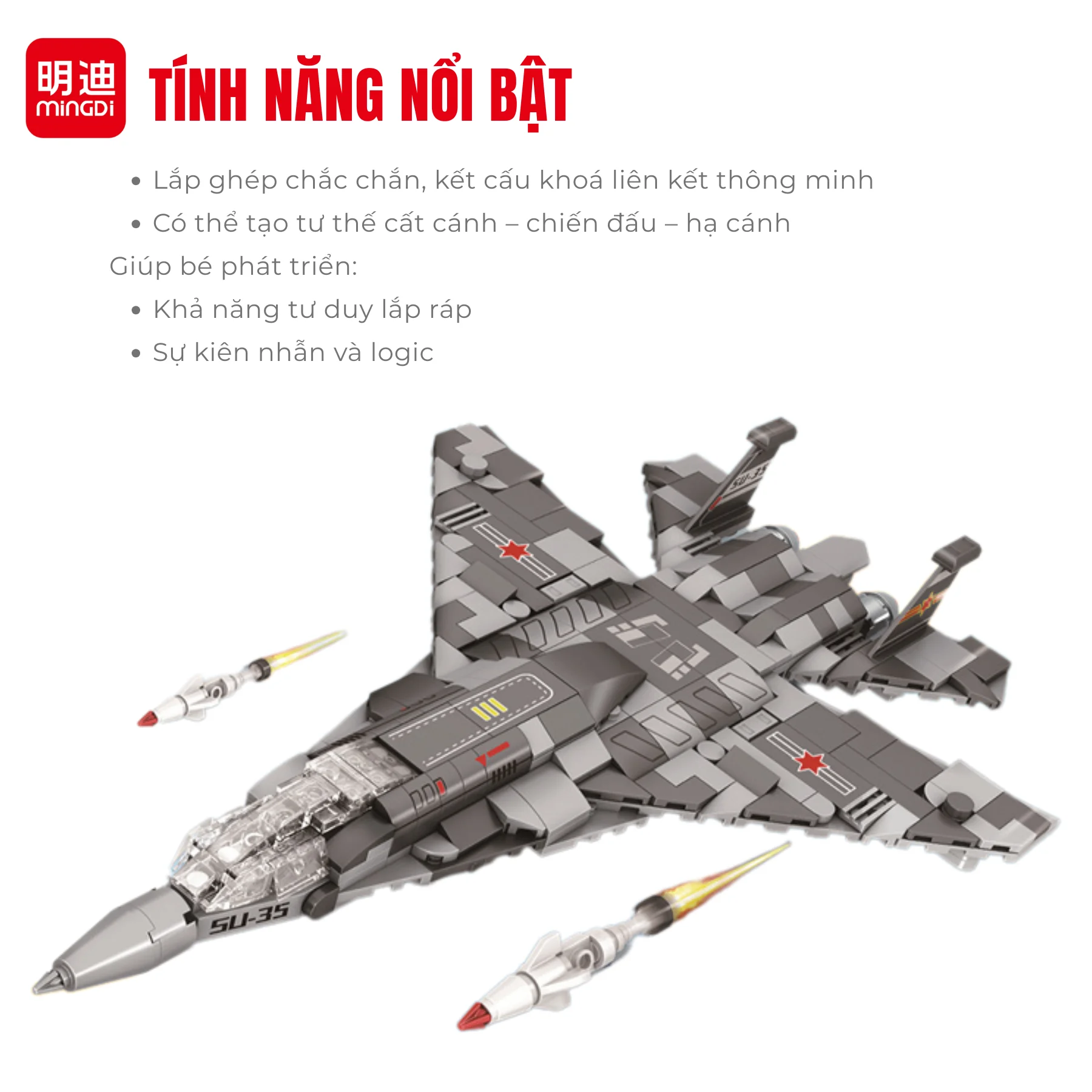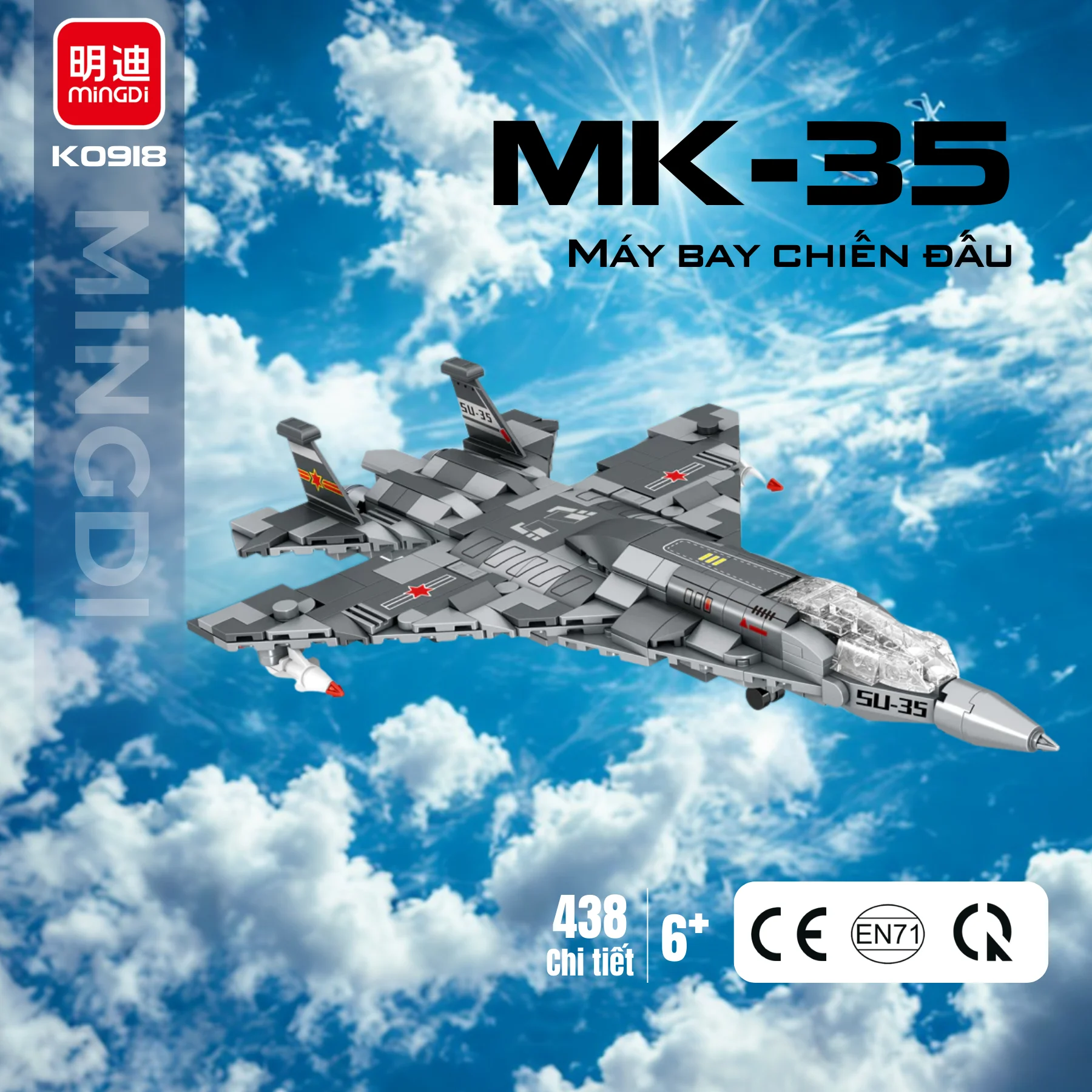 Đồ chơi lắp ráp máy bay chiến đấu MK-35 MINGDI K2073 với 438 chi tiết mô phỏng SU-35 hiện đại. Mô hình tinh xảo, sống động, giúp bé 6+ vừa chơi vừa học.
