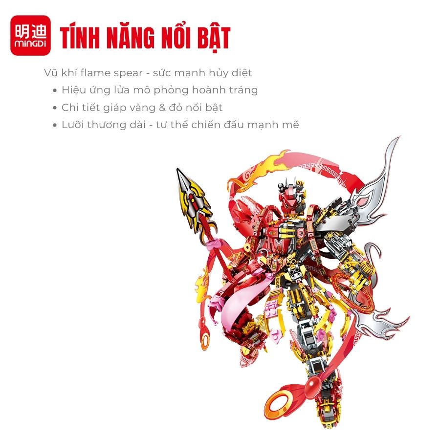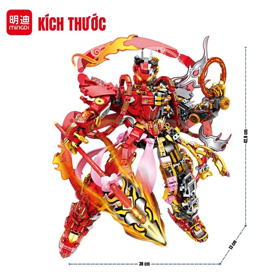 Đồ chơi lắp ráp Na Tra robot chiến binh MINGDI K2171 với 1309 chi tiết tinh xảo, lấy cảm hứng từ truyền thuyết dân gian, mang đến mô hình robot cơ khí cổ trang cao 42.8cm, khớp linh hoạt, màu sắc đỏ – vàng mạnh mẽ, phù hợp cho bé trai từ 6 tuổi.