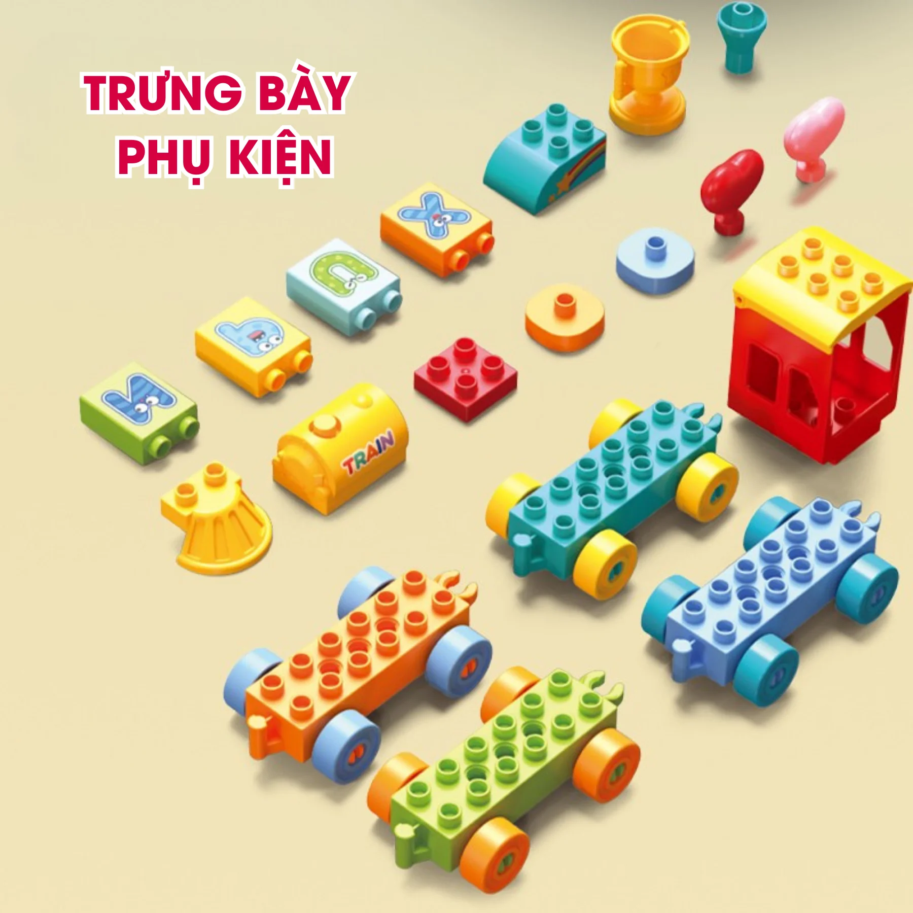 60 chi tiết kích thước lớn, bo tròn an toàn, dễ cầm nắm cho bé.