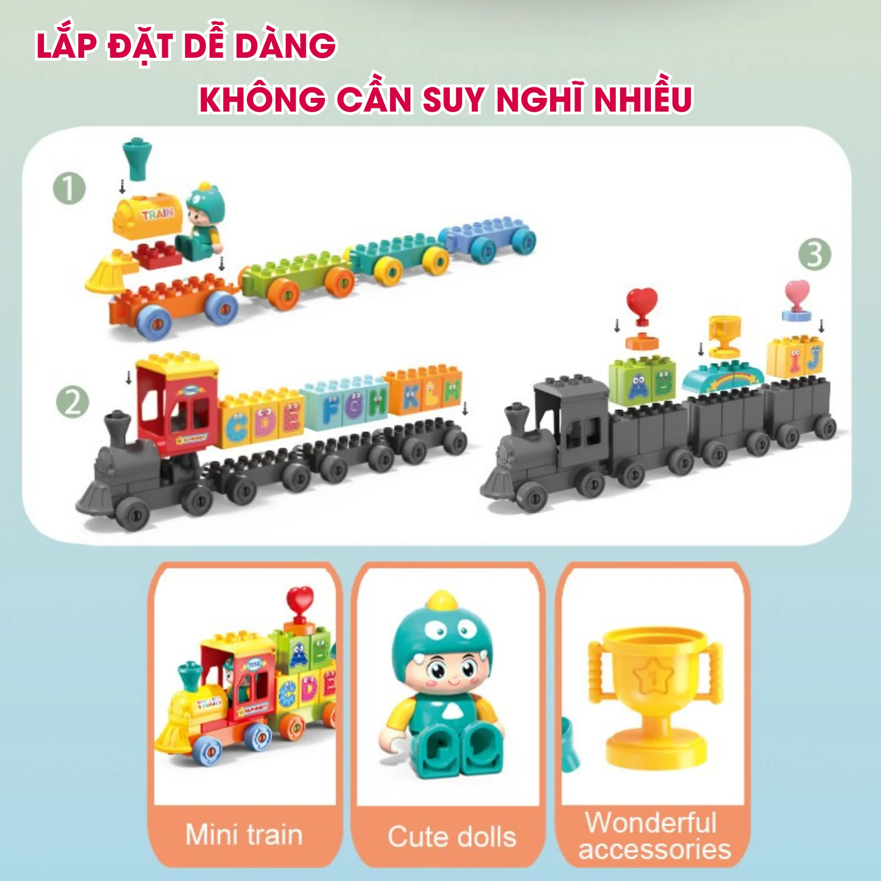 Tạo sự tự tin và hào hứng khi tự tay lắp ráp đoàn tàu chữ cái.