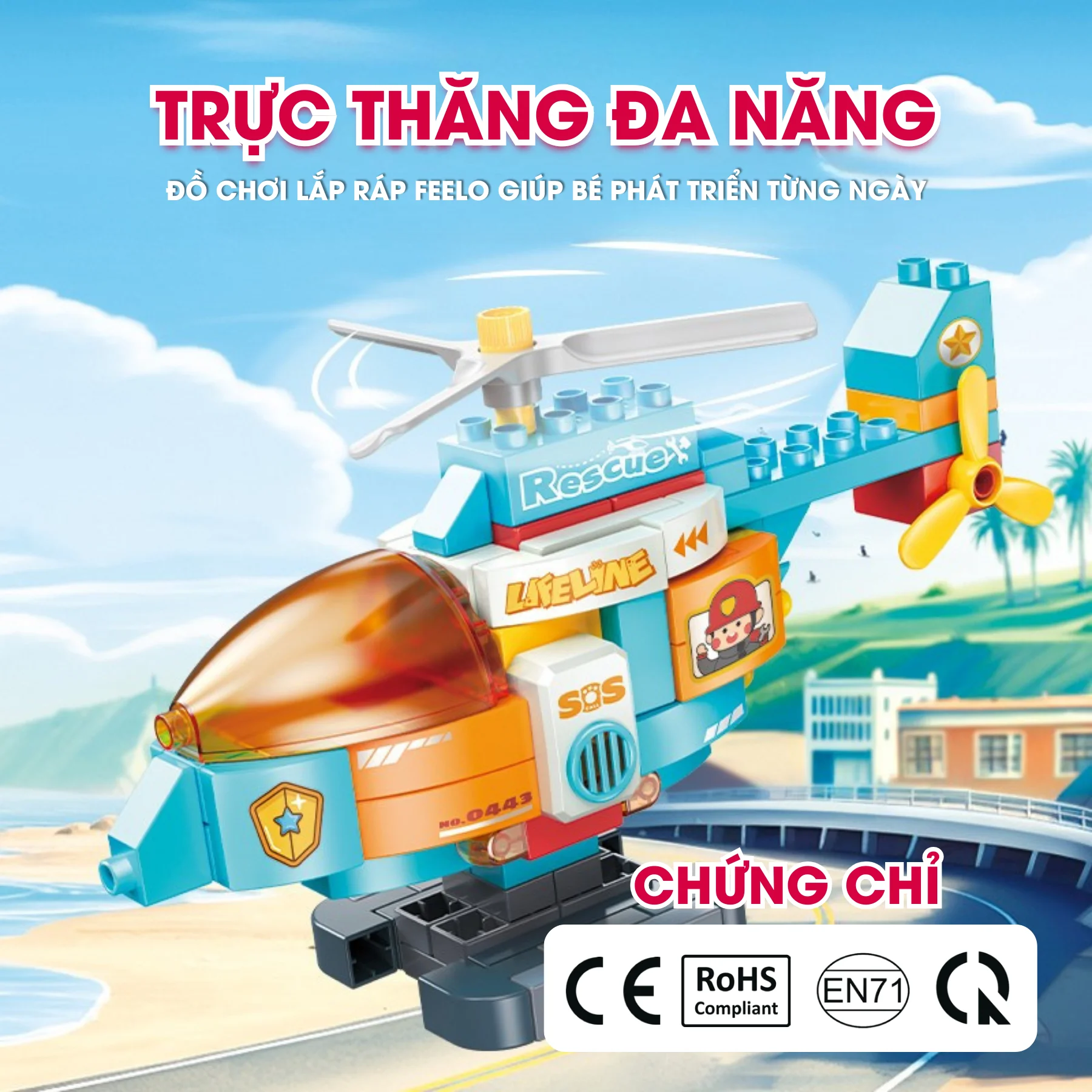 Đồ chơi lắp ráp trực thăng cứu hộ FEELO FL1181 gồm 120 chi tiết an toàn cho bé từ 3 tuổi. Mô hình trực thăng sinh động với cánh quạt xoay, buồng lái, màu sắc bắt mắt giúp bé nhập vai phi công nhí, vừa chơi vừa phát triển trí tưởng tượng và kỹ năng vận động tinh.