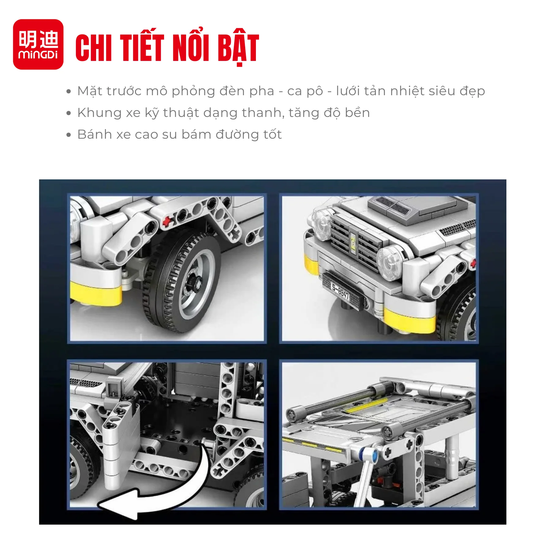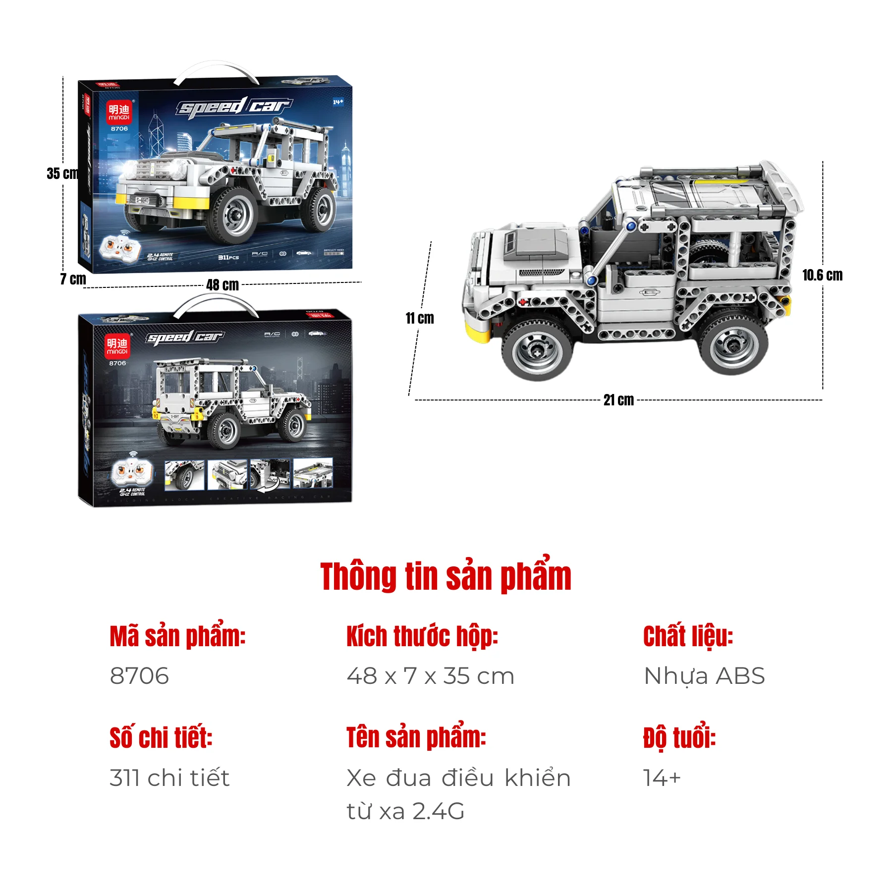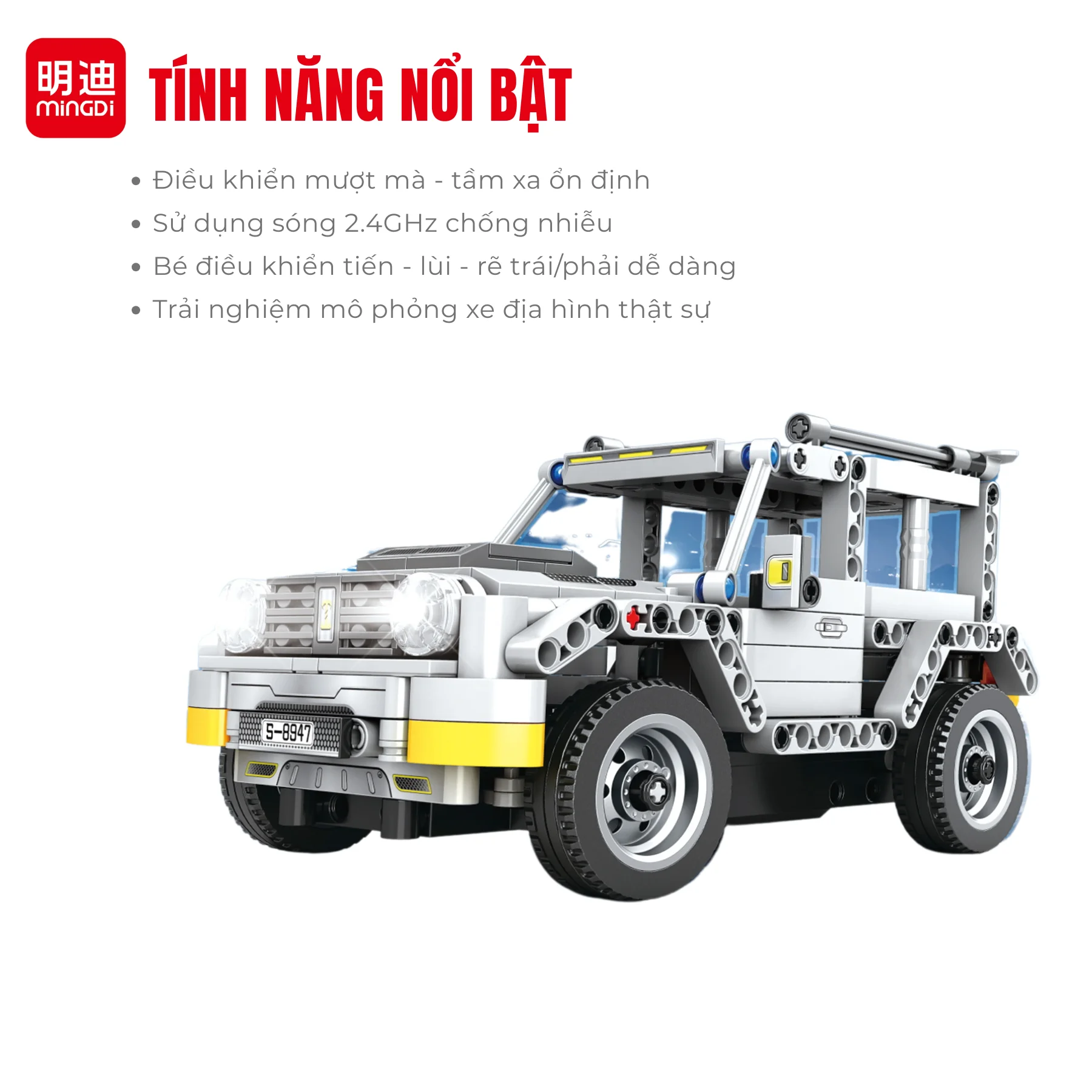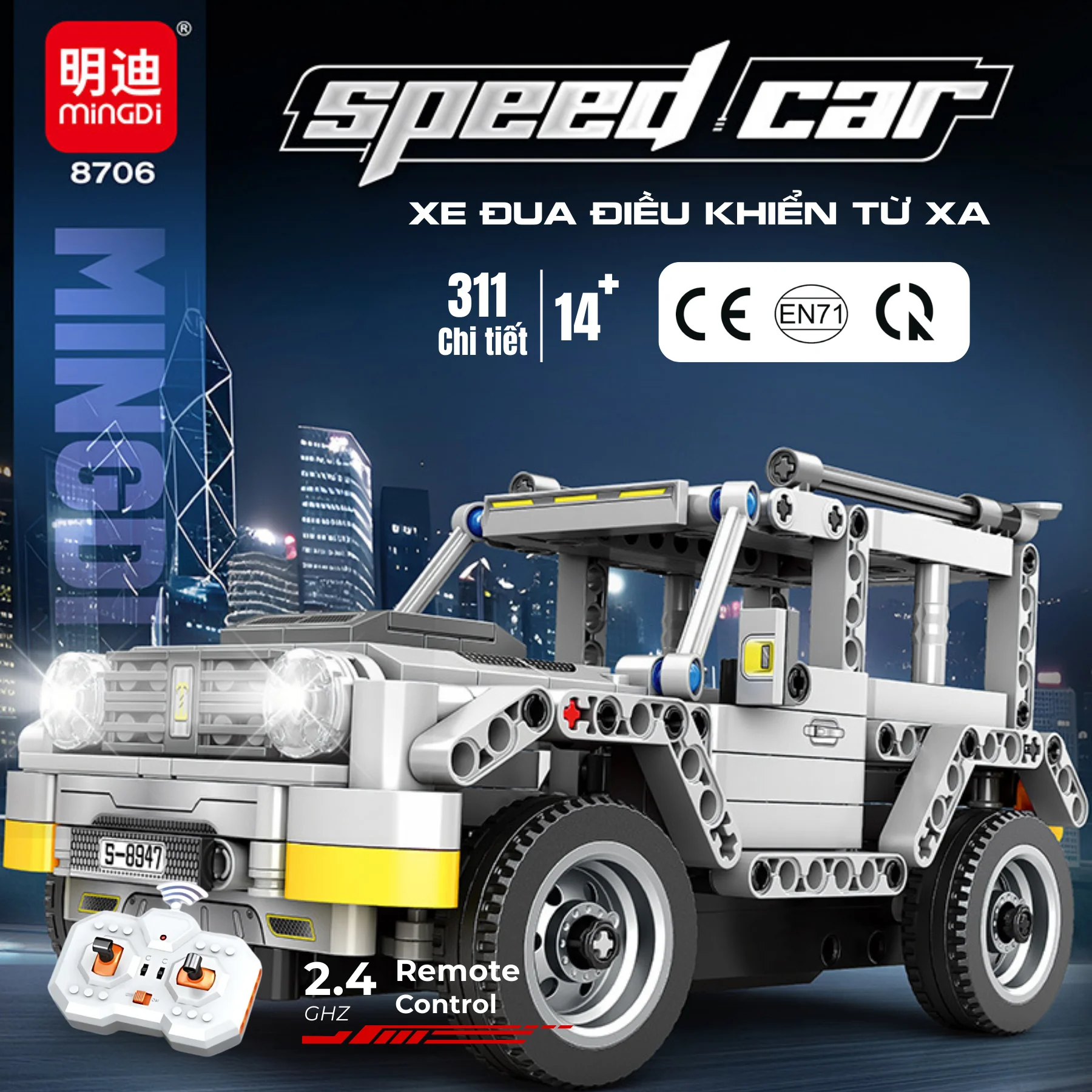 Đồ chơi lắp ráp xe địa hình điều khiển từ xa MINGDI 8706 gồm 311 chi tiết, tỉ lệ 1:24. Bé vừa lắp ráp vừa điều khiển bằng remote 2.4GHz, trải nghiệm học mà chơi thú vị, an toàn và sáng tạo.