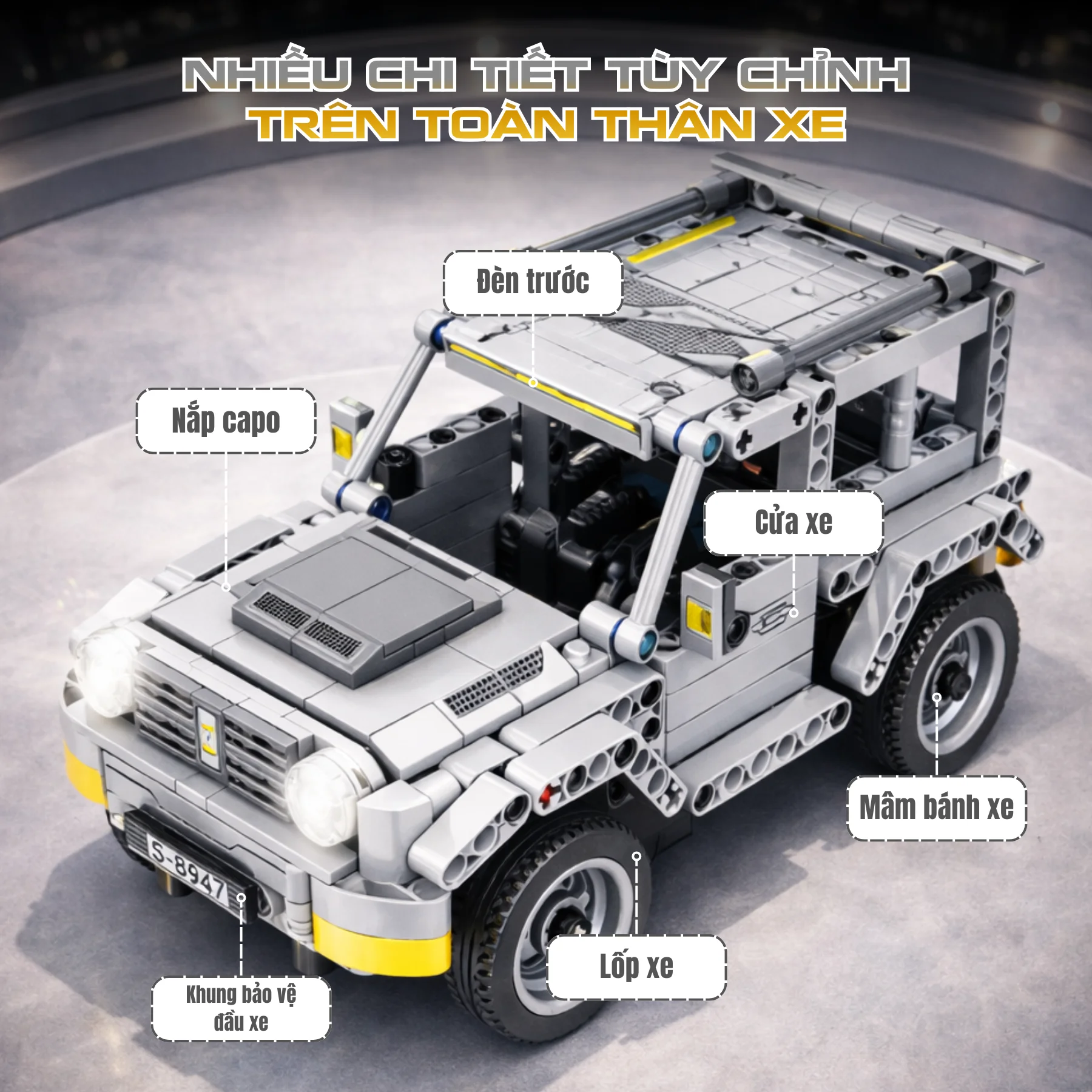 Thiết kế mô phỏng xe địa hình cực chất, màu sắc nổi bật.