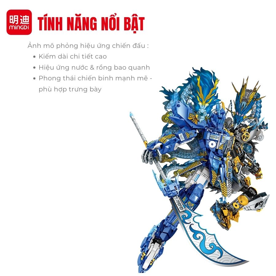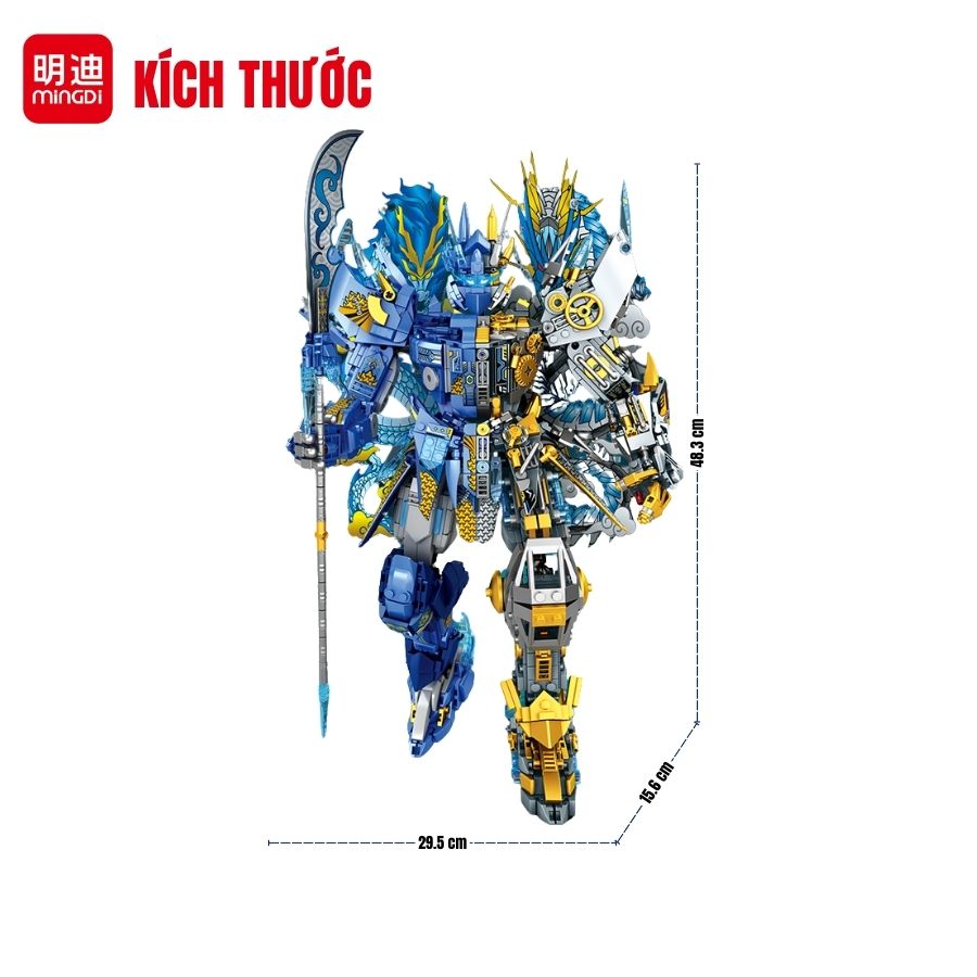 Đồ chơi Ngao Bính robot chiến binh rồng MINGDI K2170 với 1342 chi tiết lắp ghép, mô hình cao 48.3cm lấy cảm hứng từ truyền thuyết phương Đông. Thiết kế cơ khí sắc sảo màu xanh – vàng ánh kim nổi bật, giúp bé vừa chơi vừa rèn luyện tư duy logic và sáng tạo.