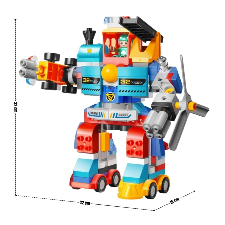 Lắp thành nhiều phương tiện khác nhau hoặc kết hợp thành robot cao 32cm.