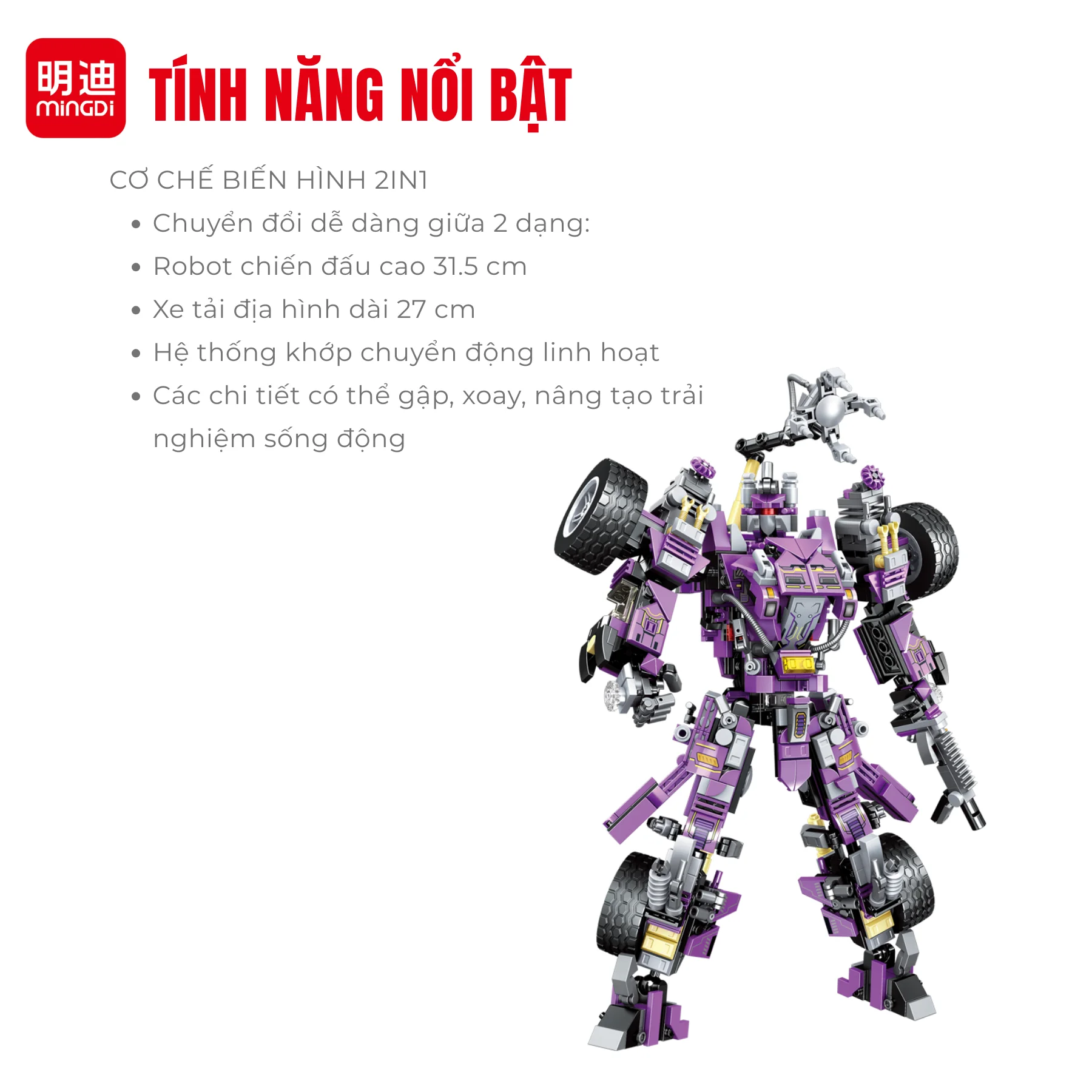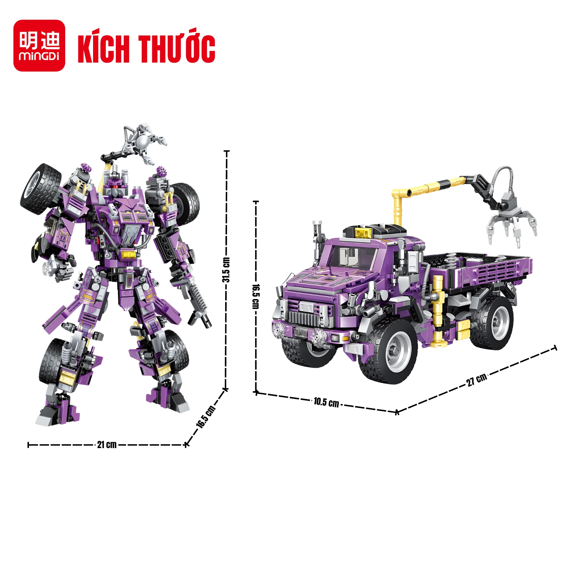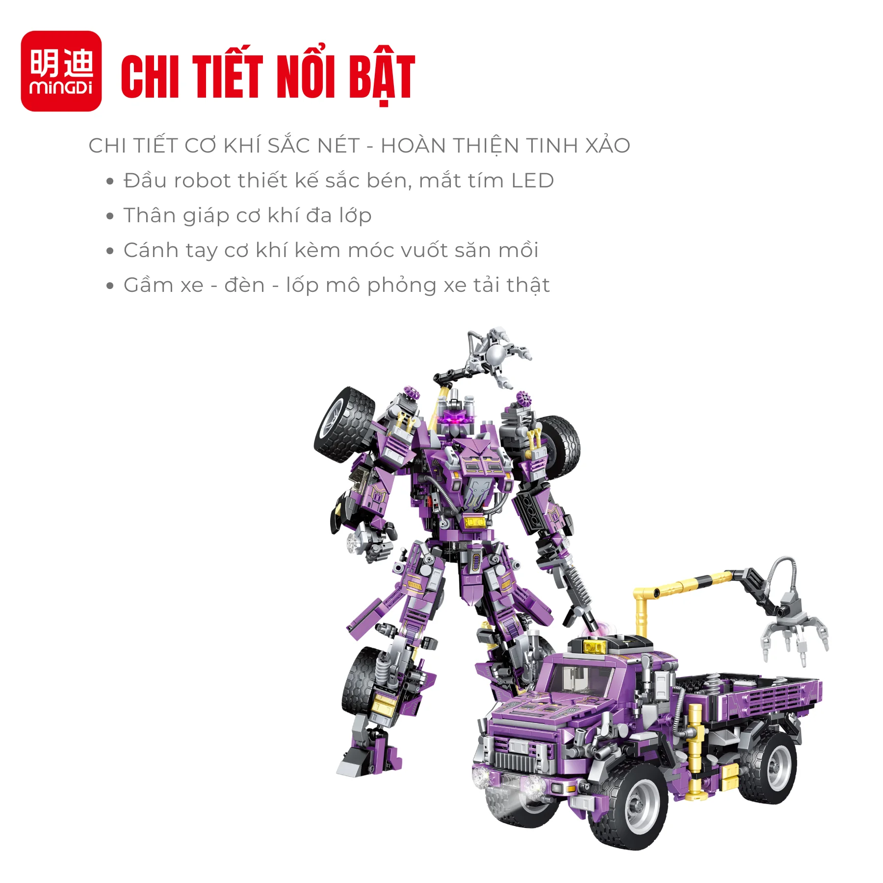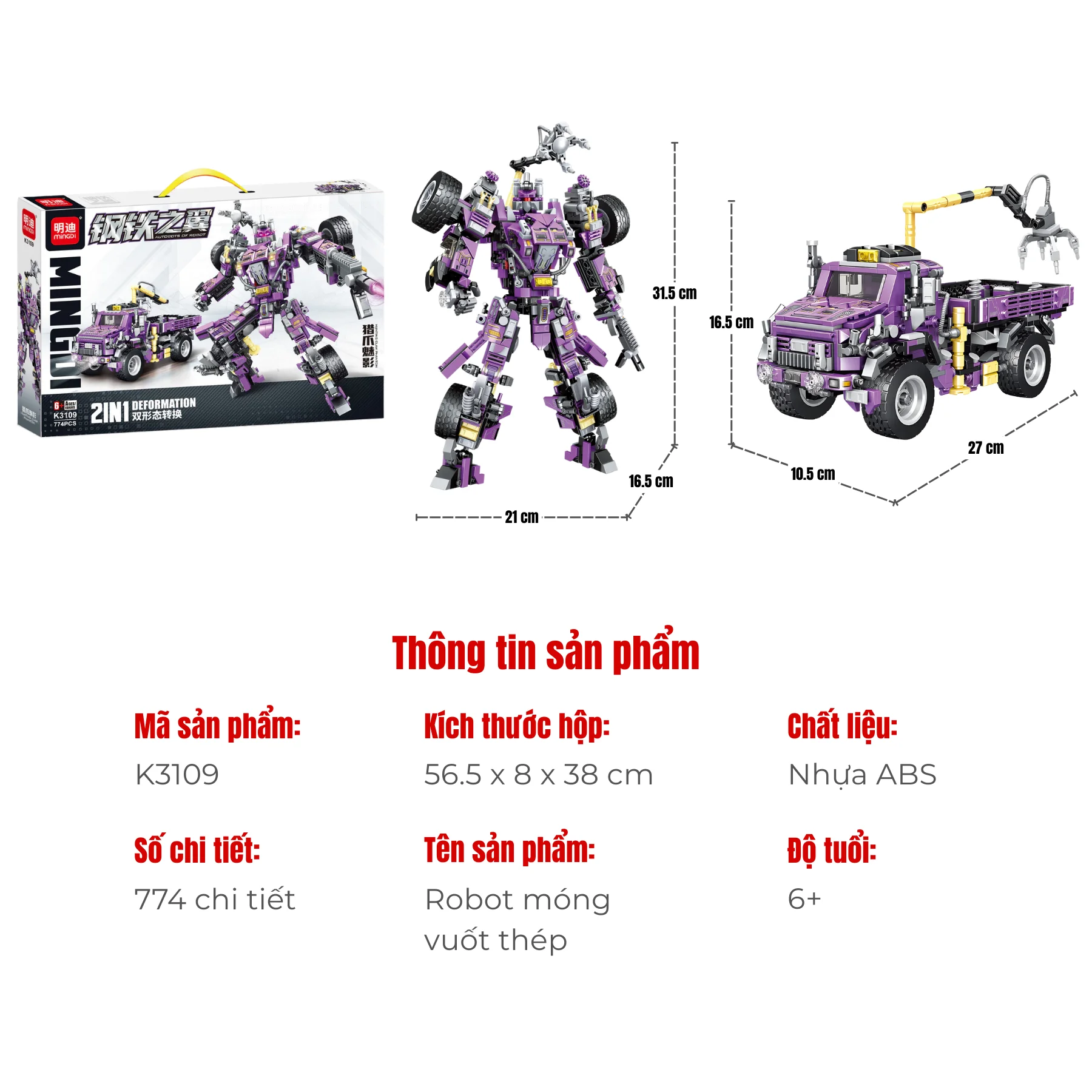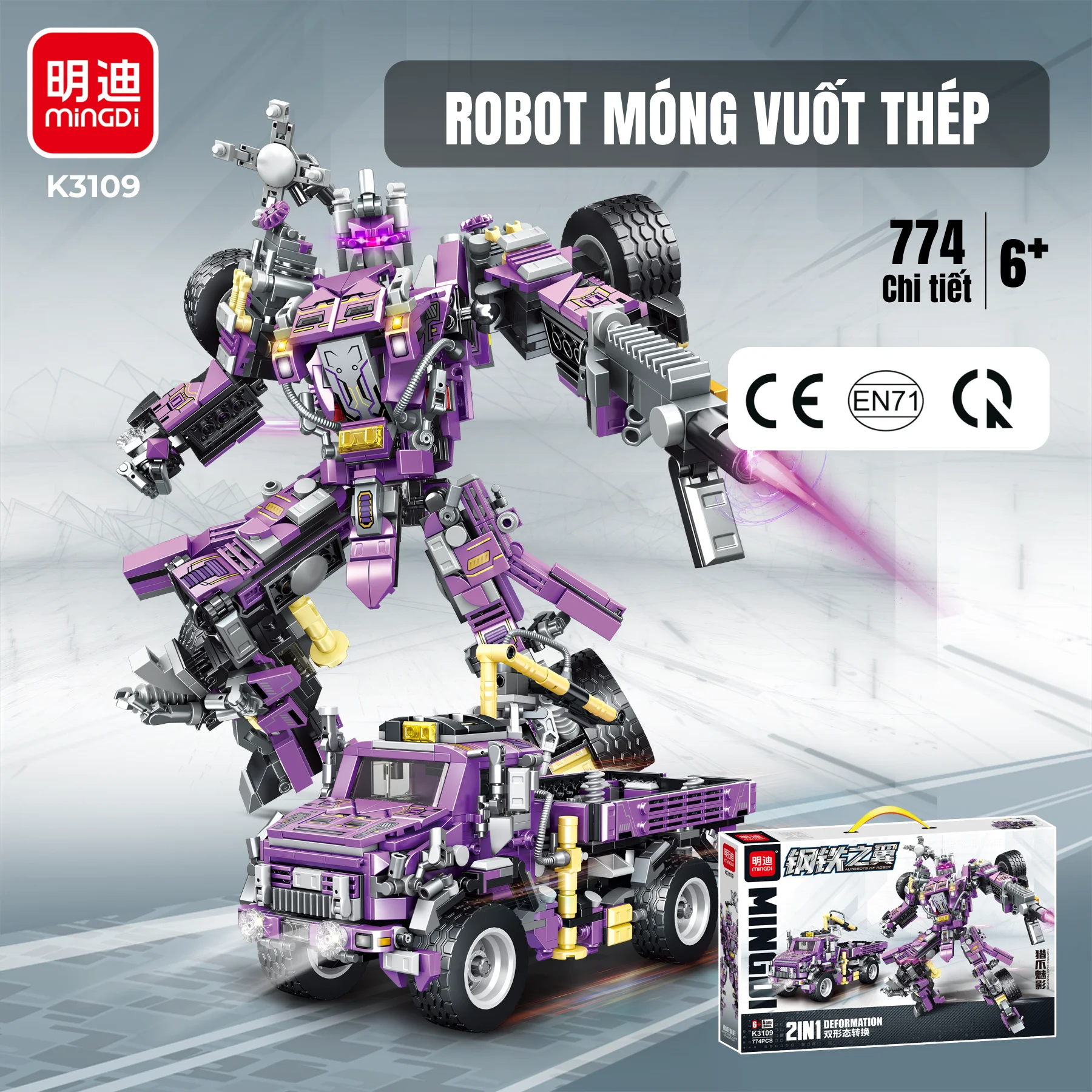 Đồ chơi robot móng vuốt thép MINGDI K3109 mang đến trải nghiệm lắp ráp siêu ngầu, biến hình linh hoạt giữa xe tải cơ động và robot hành động mạnh mẽ.
