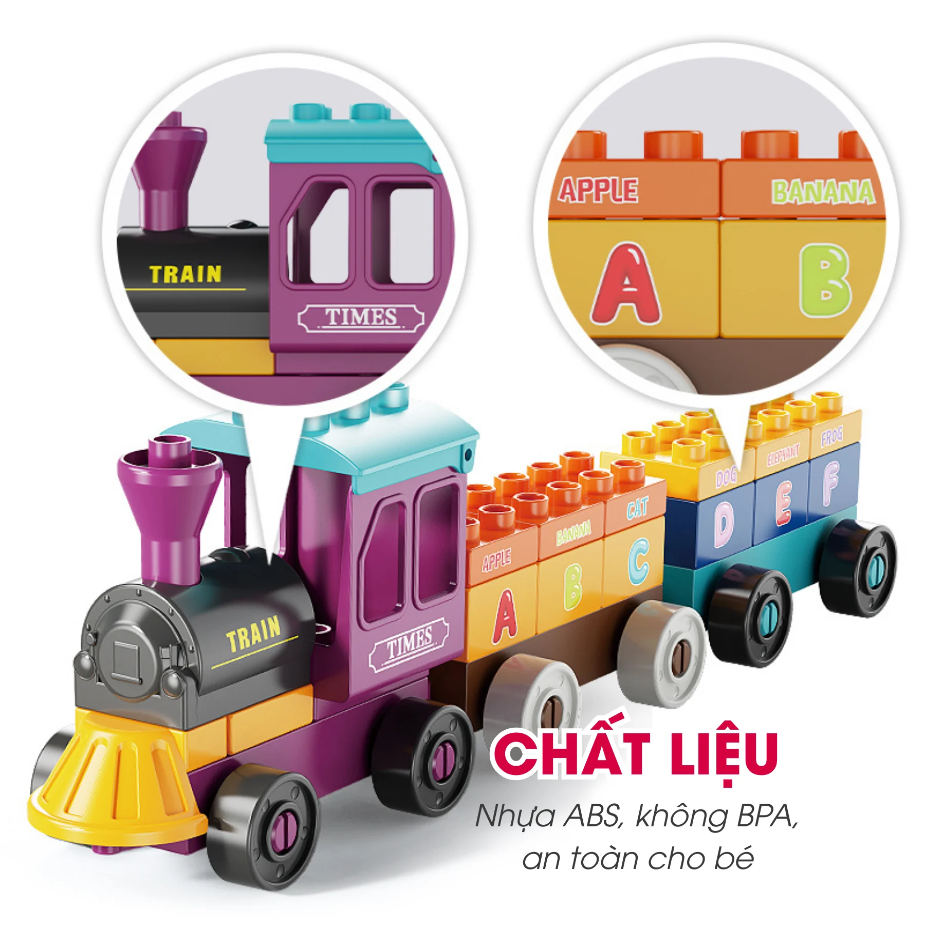 Các toa tàu tháo rời – ghép lại linh hoạt, dễ chơi, dễ học.