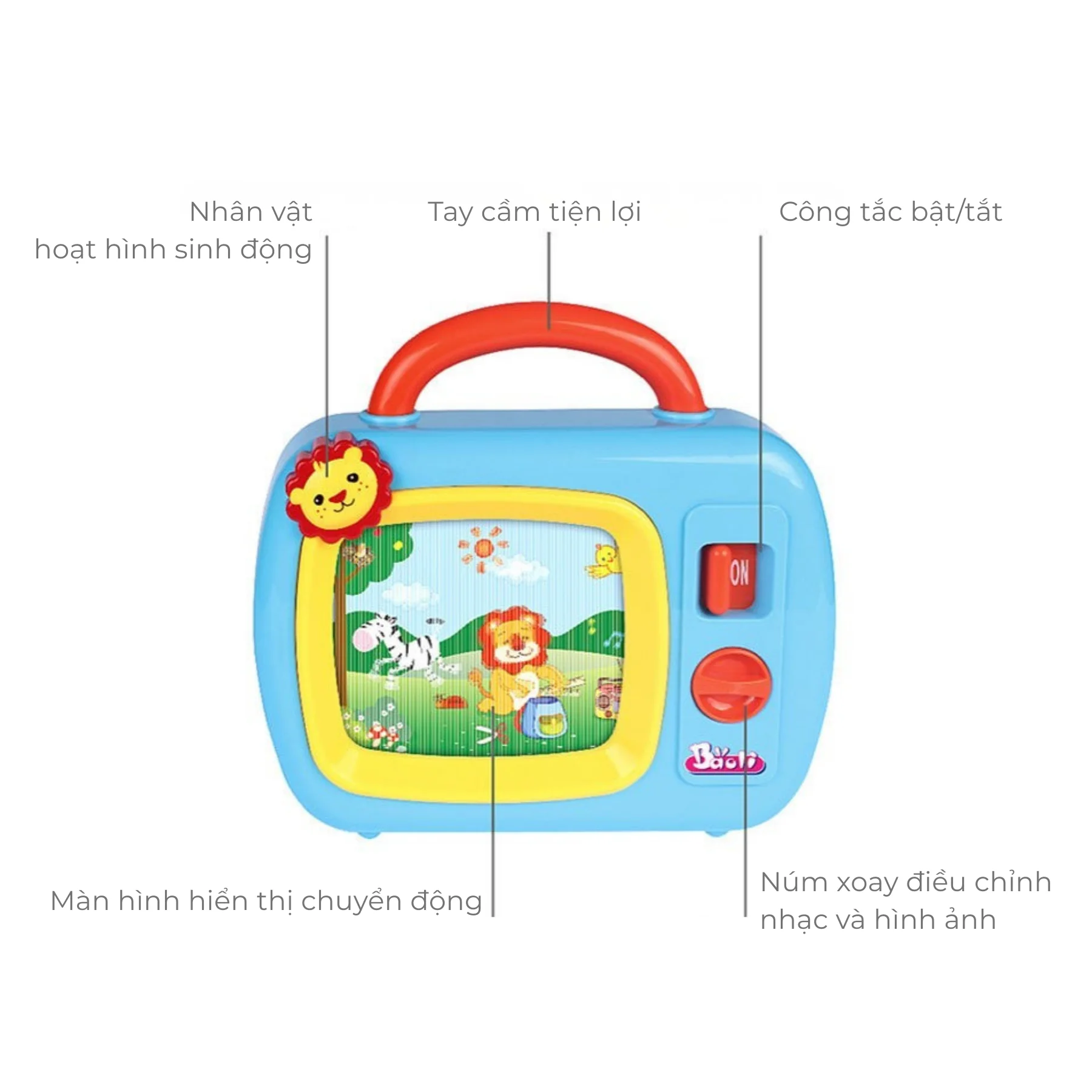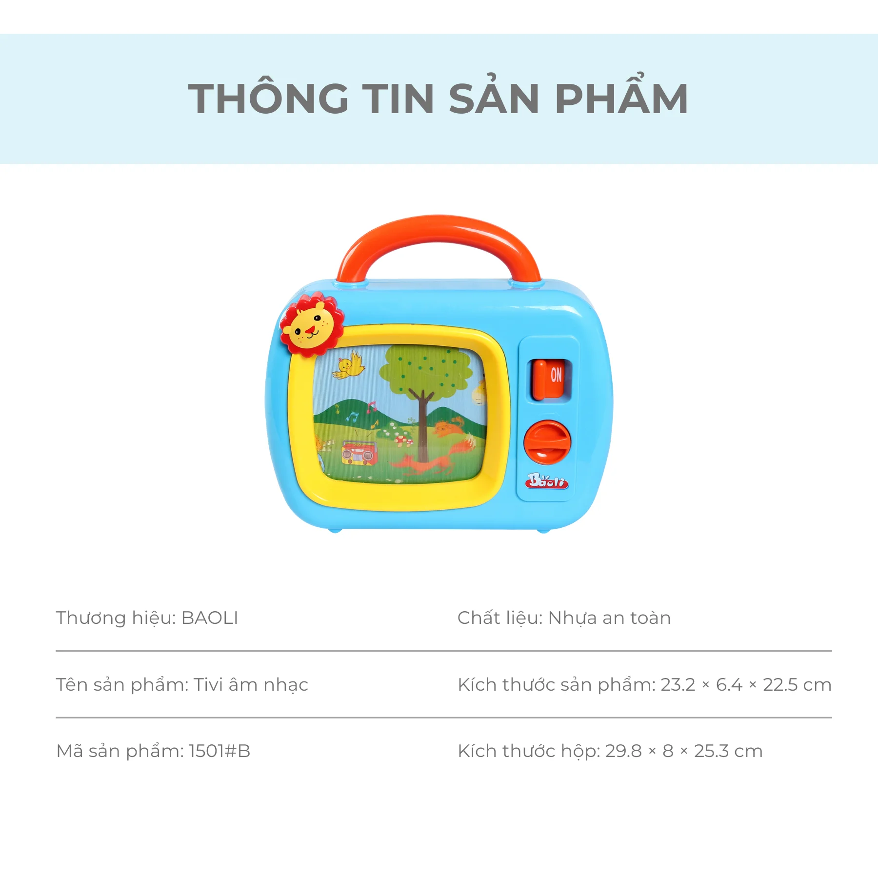 Đồ chơi TV âm nhạc BAOLI màu xanh dương 1501#B là món đồ chơi mô phỏng chiếc TV cổ điển, phát ra âm nhạc vui nhộn và hình ảnh hoạt họa chuyển động khi bé xoay núm. Thiết kế thân thiện, dễ cầm nắm giúp bé vừa chơi vừa phát triển kỹ năng vận động tinh và khả năng quan sát, mang lại cảm giác thích thú như đang “xem TV thật”.