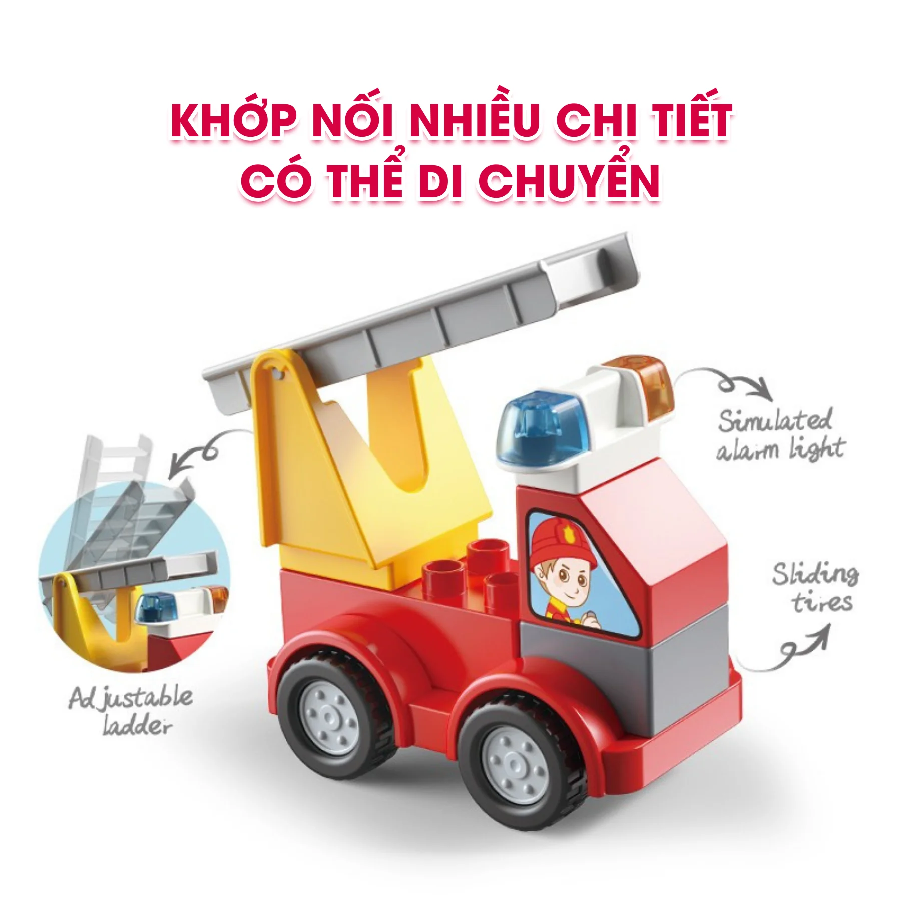 9 chi tiết lắp ráp xe cứu hỏa mini