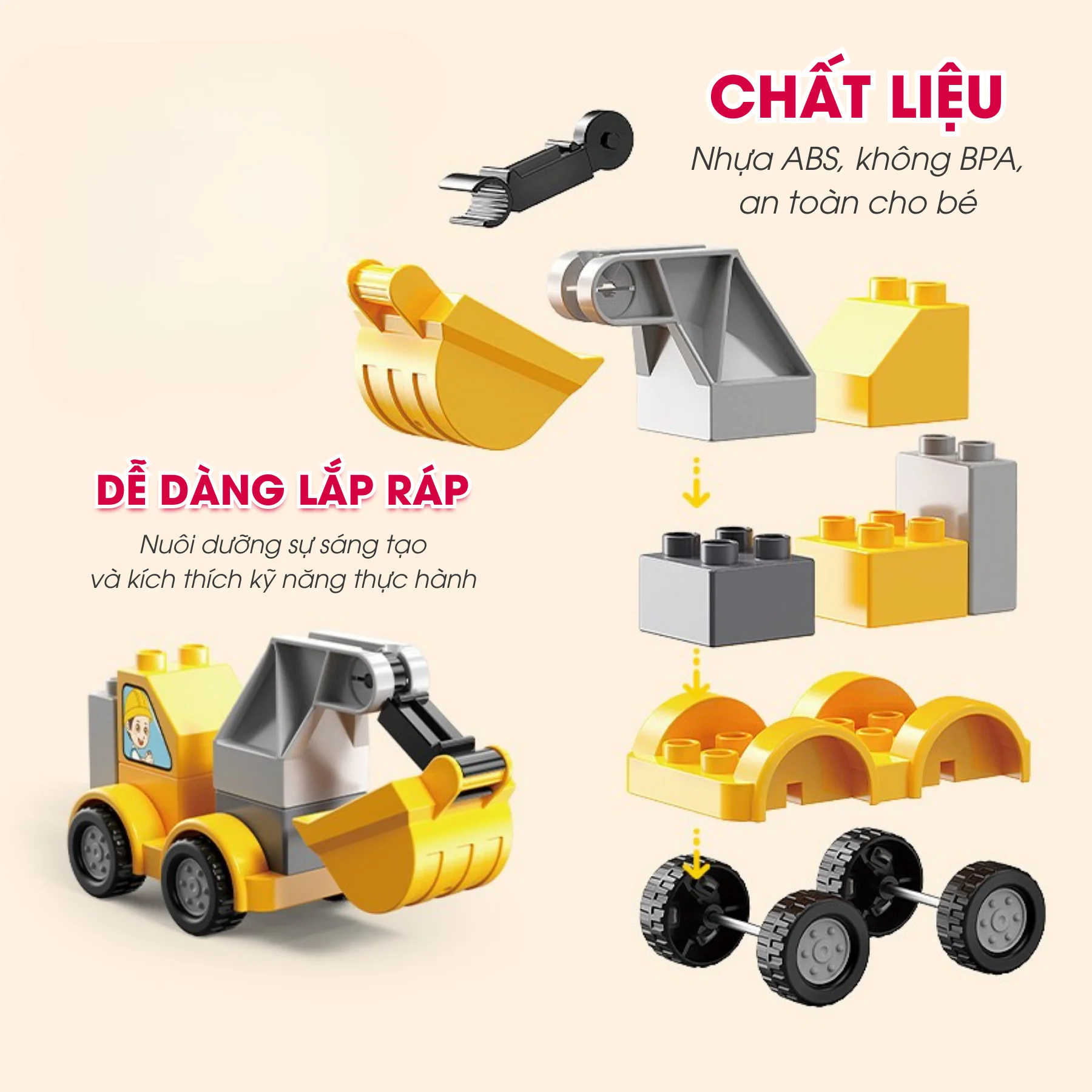 Giúp bé làm quen với kỹ năng lắp ráp và thao tác cơ bản.