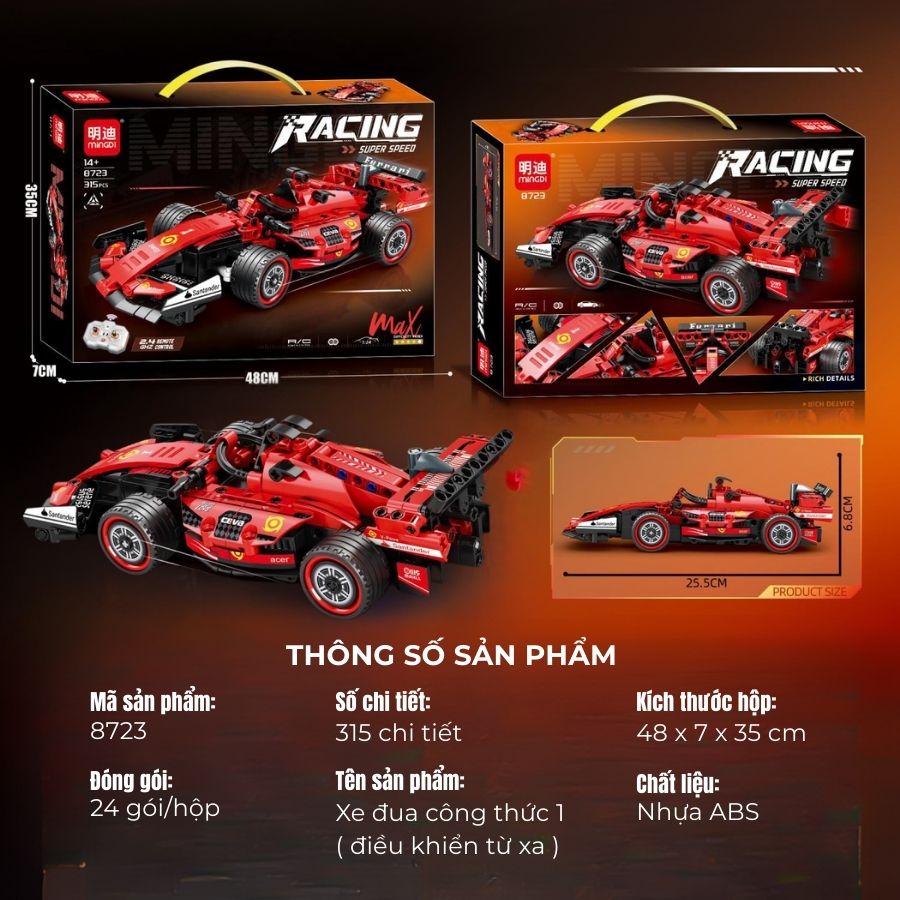 Đồ chơi xe đua công thức 1 điều khiển từ xa MINGDI 8723 – 315 chi tiết, tỉ lệ 1:24, mô phỏng siêu xe F1 thể thao, cho bé trai từ 14 tuổi trở lên.