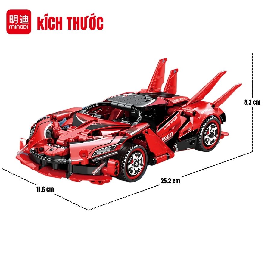 Đồ chơi xe đua điều khiển từ xa MINGDI 8707 với 288 chi tiết lắp ráp, thiết kế khí động học chuẩn xe đua thể thao, sóng 2.4GHz ổn định. Đồ chơi công nghệ cho bé trai 6+.