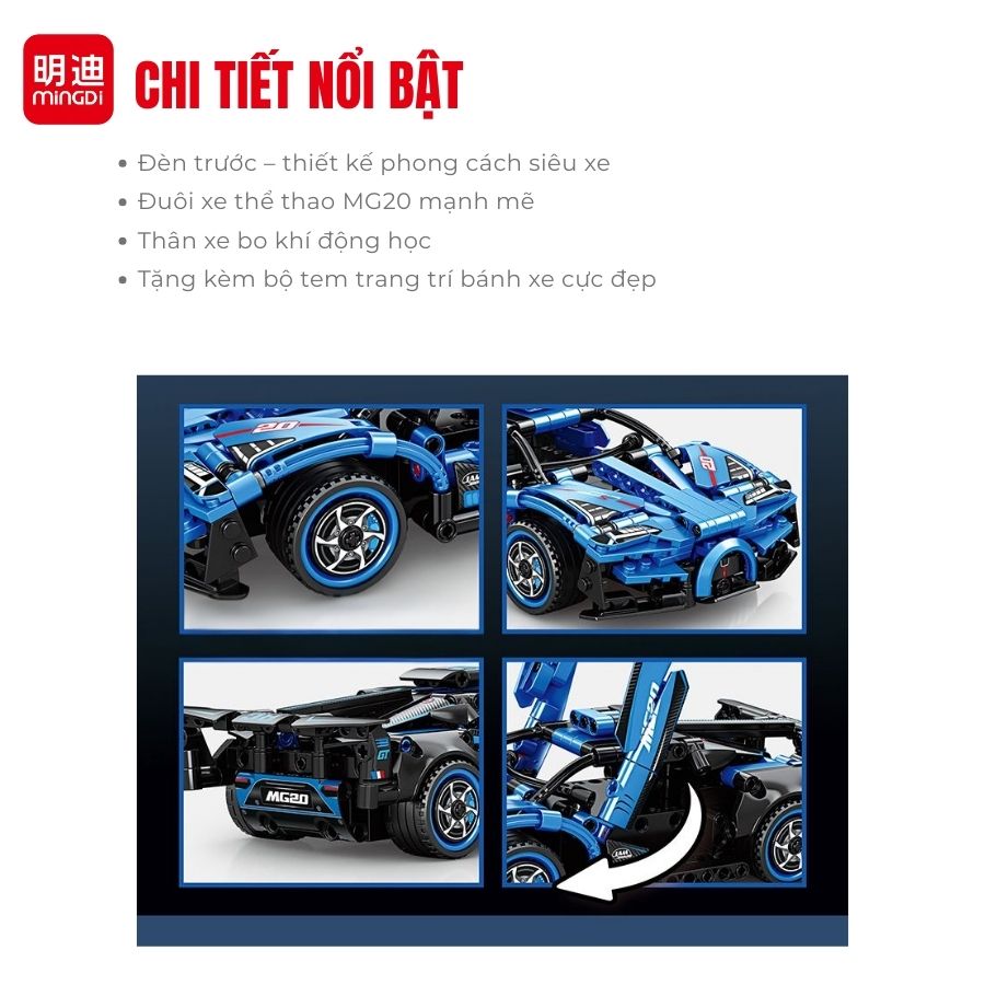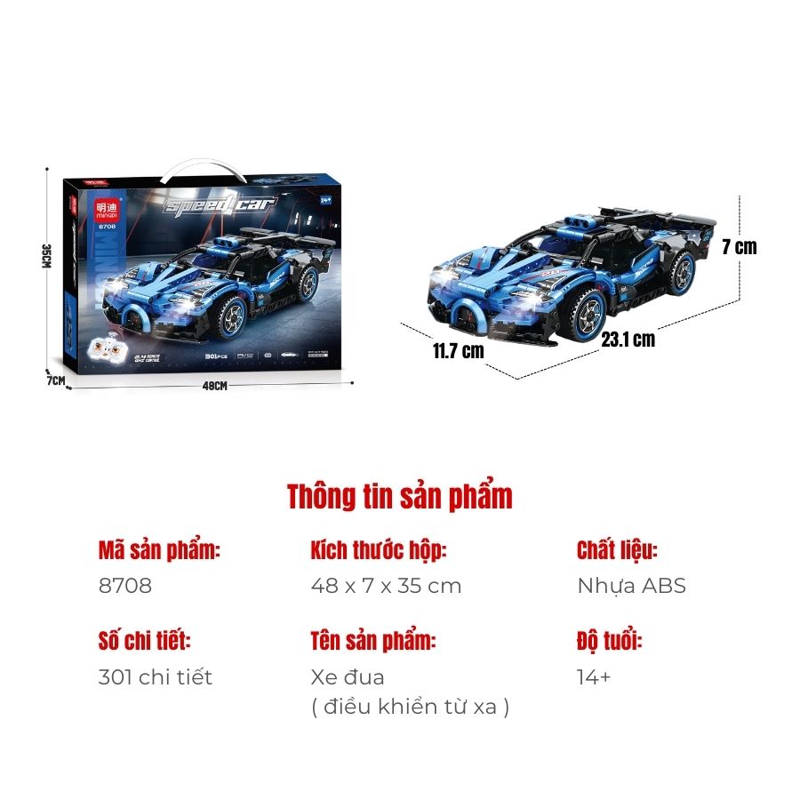 Đồ chơi xe đua điều khiển từ xa MINGDI 8708 tỉ lệ 1:24, gồm 301 chi tiết lắp ghép chắc chắn, điều khiển sóng 2.4GHz mượt mà. Bé trai từ 14 tuổi có thể tự tay lắp ráp mô hình siêu xe tốc độ và trải nghiệm cảm giác lái cực chân thực.