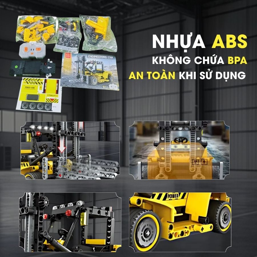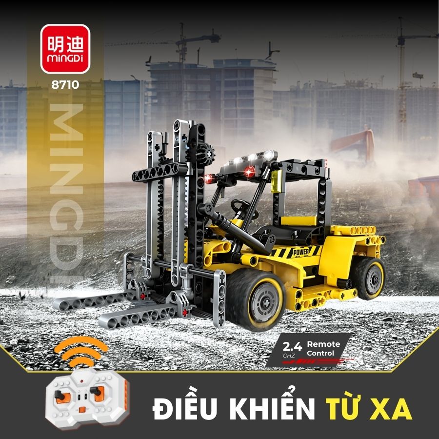 Đồ chơi xe nâng kỹ thuật điều khiển từ xa MINGDI 8710 tỉ lệ 1:24 với 333 chi tiết lắp ráp mô phỏng chân thực. Remote 2.4GHz điều khiển linh hoạt, an toàn cho bé trai từ 8 tuổi.