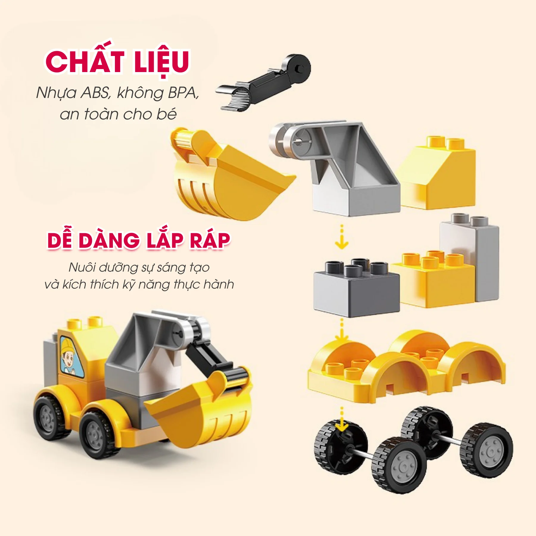 Thiết kế đơn giản, chi tiết lớn, phù hợp cho bé từ 3 tuổi trở lên dễ dàng lắp ráp.