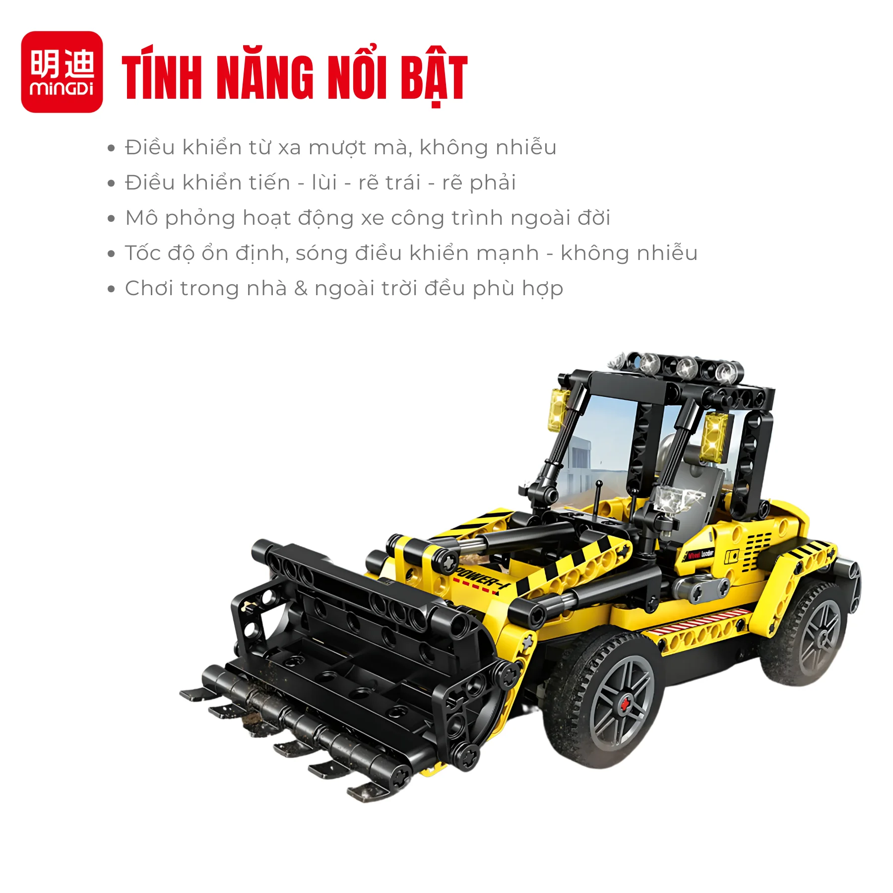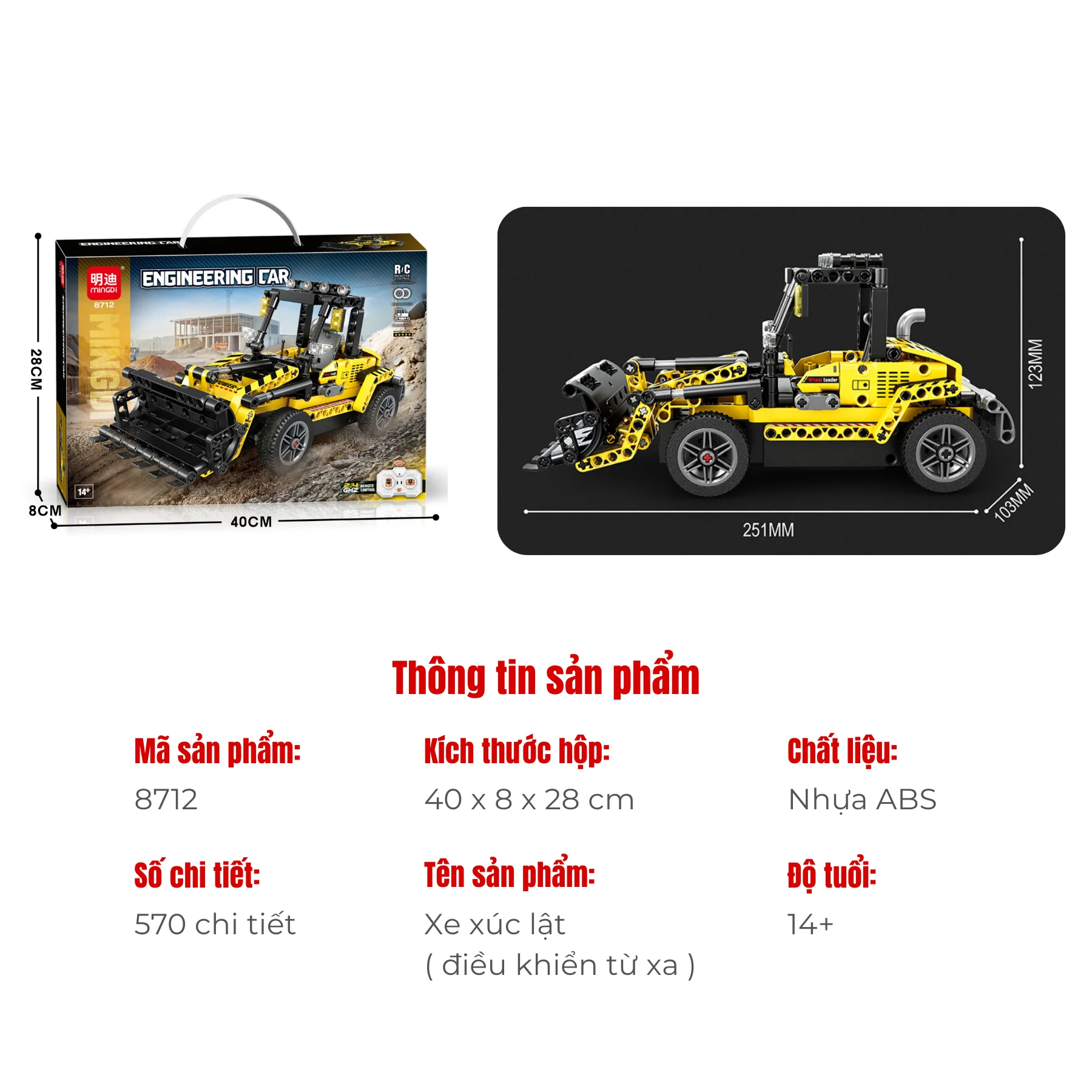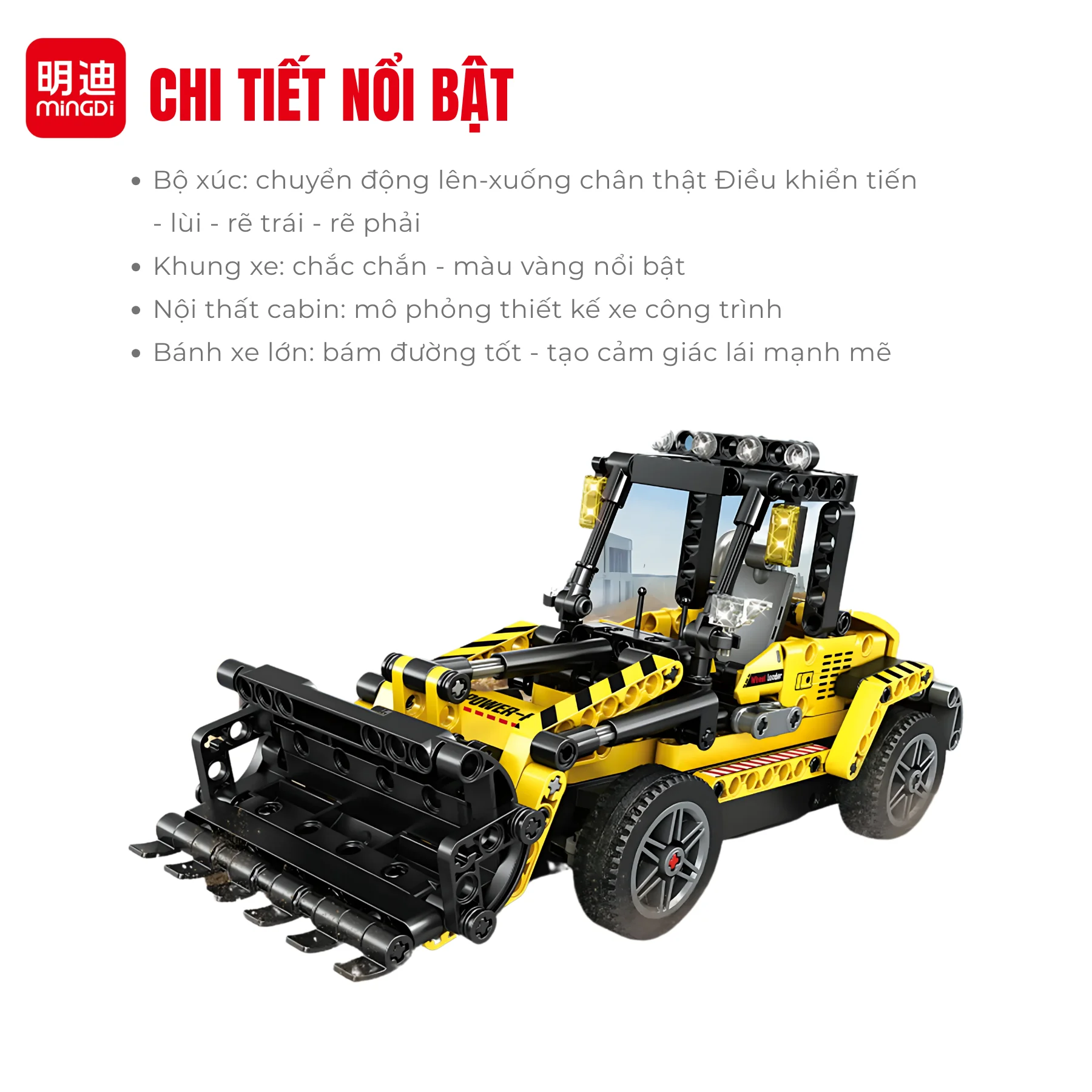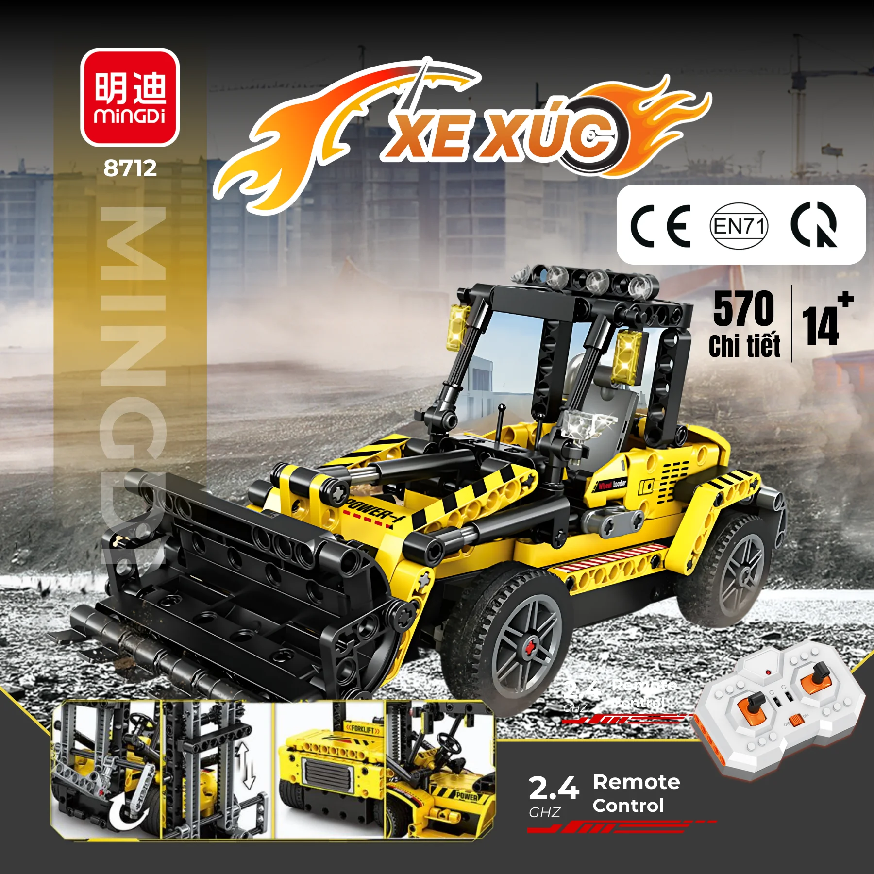 Đồ chơi xe xúc lật điều khiển từ xa MINGDI 8712 với 570 chi tiết lắp ghép tỉ lệ 1:24, mô phỏng chân thực xe công trình. Trang bị remote 2.4GHz điều khiển linh hoạt, giúp bé vừa lắp ráp vừa trải nghiệm vận hành như xe xúc thật.