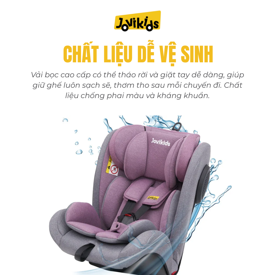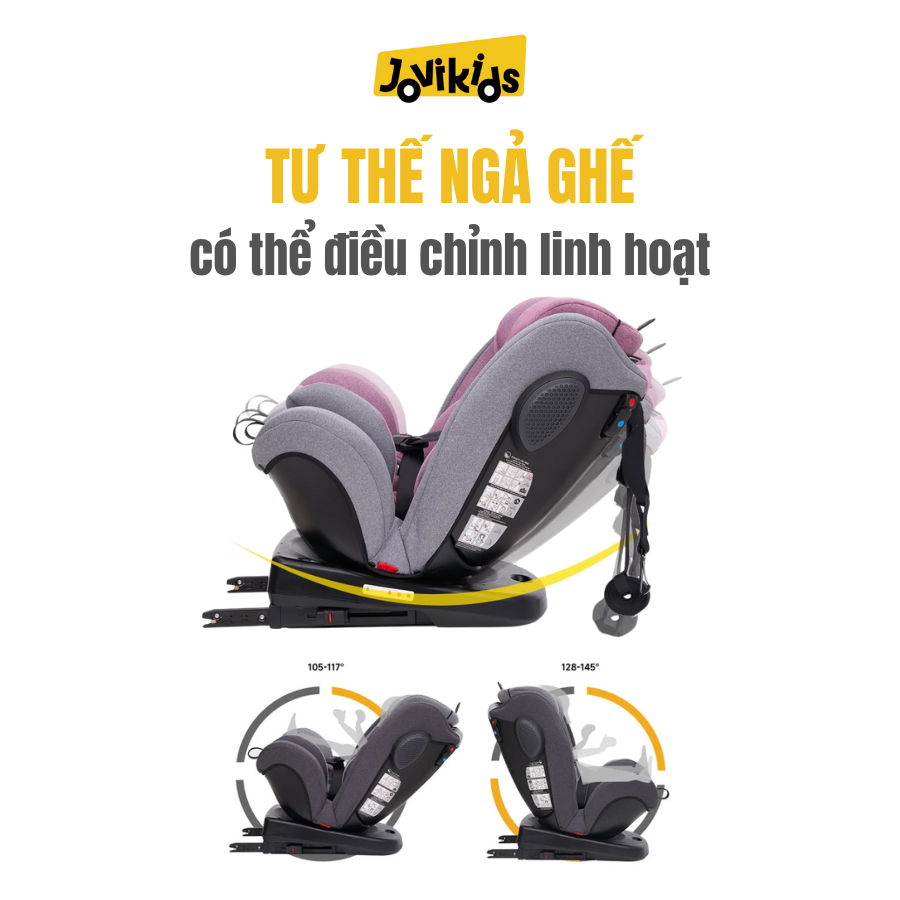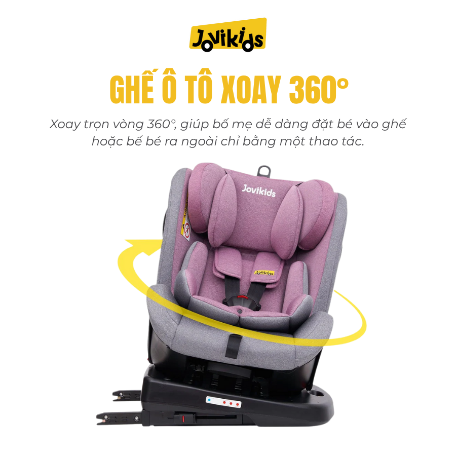 Jovikids Angela là mẫu ghế ô tô xoay 360° tiện lợi, phù hợp cho bé từ sơ sinh đến 12 tuổi. Sản phẩm sở hữu thiết kế chắc chắn, đạt chuẩn an toàn châu Âu R44, mang đến sự bảo vệ tối ưu và trải nghiệm thoải mái cho bé trong mọi hành trình. Đây là lựa chọn lý tưởng cho gia đình muốn một mẫu ghế an toàn – bền – dễ dùng.