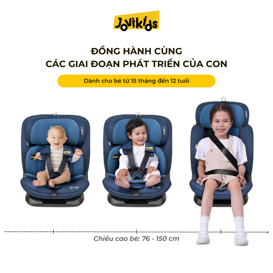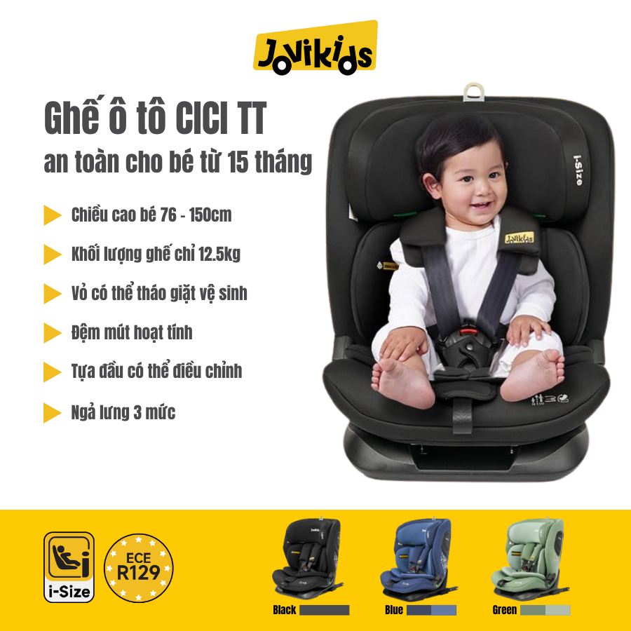 Bé đã lớn và cần một chiếc ghế ô tô vừa thoải mái vừa an toàn, dùng được dài lâu? Jovikids CICI TT i-Size là lựa chọn được nhiều phụ huynh hiện đại tin dùng nhờ thiết kế chắc chắn, tiêu chuẩn châu Âu R129/i-Size và độ bền vượt trội. Ghế phù hợp cho bé từ 15 tháng đến 12 tuổi, mang đến sự an tâm trong mọi chuyến đi.