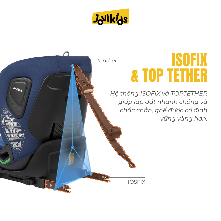 - Isofix + Top Tether – Cố định siêu chắc chắn. Ghế không xê dịch khi xe phanh gấp hoặc vào cua. Lắp đặt nhanh chóng, an toàn và tương thích đa số các loại xe phổ biến.