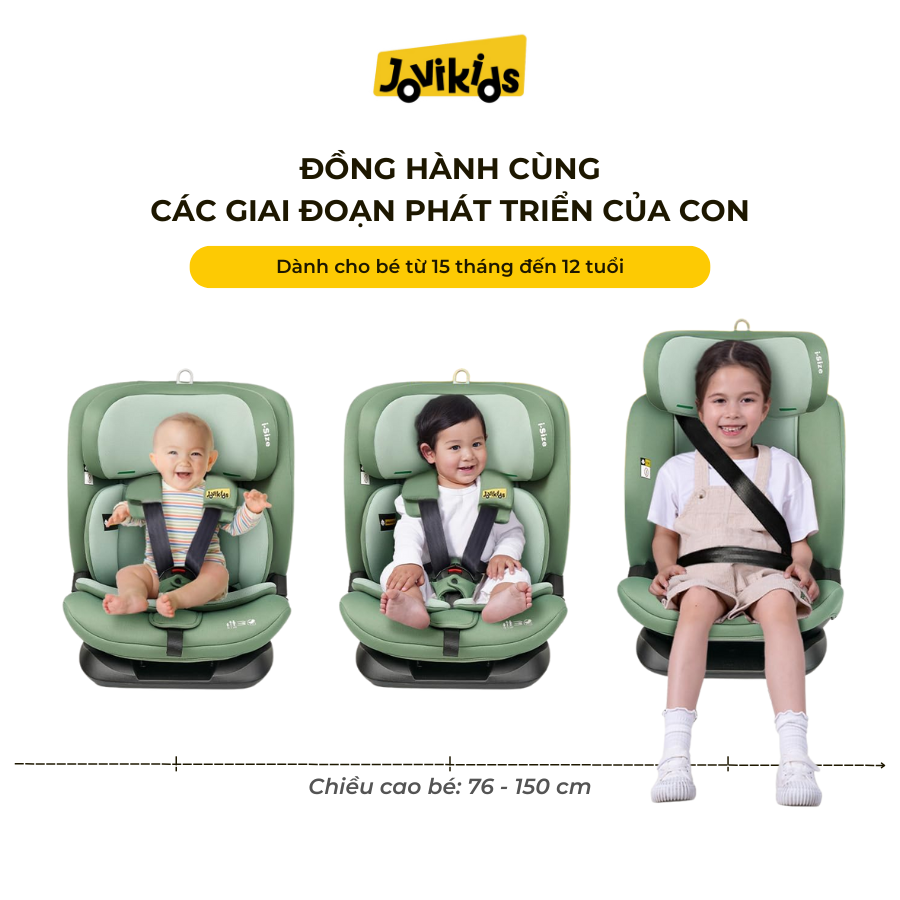 Bé đã lớn và cần một chiếc ghế ô tô vừa thoải mái vừa an toàn, dùng được dài lâu? Jovikids CICI TT i-Size là lựa chọn được nhiều phụ huynh hiện đại tin dùng nhờ thiết kế chắc chắn, tiêu chuẩn châu Âu R129/i-Size và độ bền vượt trội. Ghế phù hợp cho bé từ 15 tháng đến 12 tuổi, mang đến sự an tâm trong mọi chuyến đi.