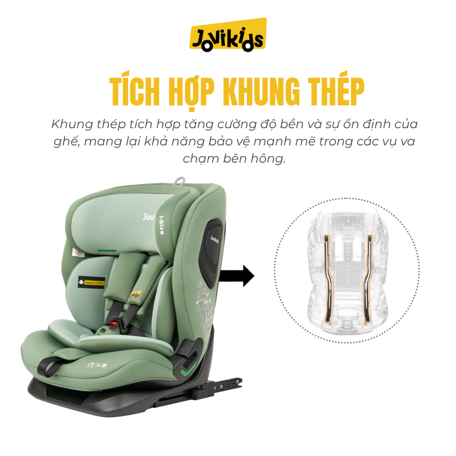 Jovikids CICI TT (Green) – Ghế ô tô trẻ em R129 cho bé từ 15 tháng – 12 tuổi